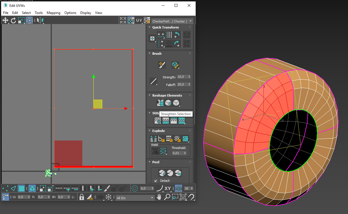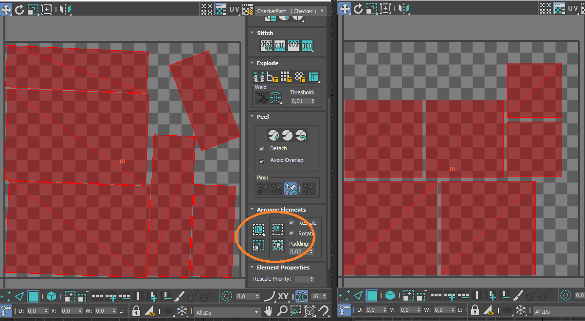 Пытаюсь осваивать макс и текстурирование. Решил начать с самого простого - тупо коробка, а точнее пачка сигарет. Но когда я делаю анврап то получается херня. По умолчанию все полигоны накладываются. Ок, я делю straighten и получаю примерно что хочу, но масштаб попердолен. Грани которые у пачки поковые и маленькие на развертке большие и наоборот - большие грани маленькие. Пик 1