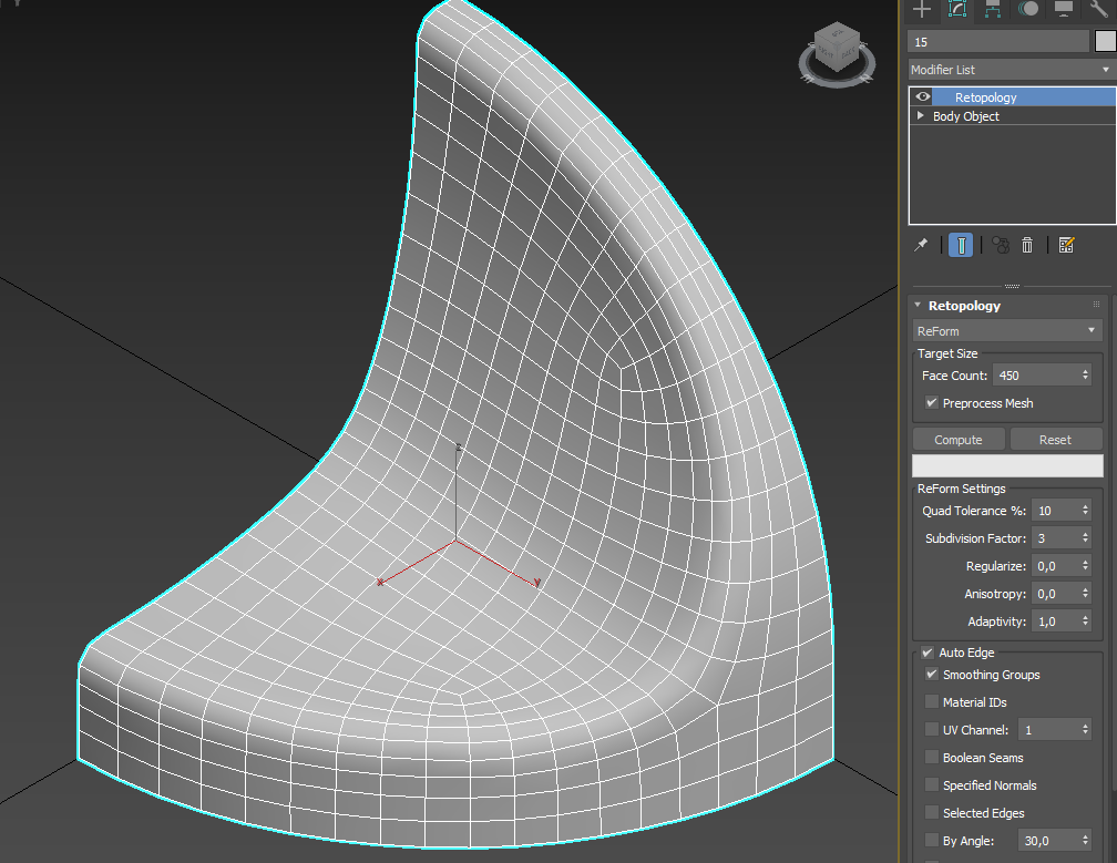 >>278847 ну это значит ретопологизировать. К примеру есть простейший куб. Его можно построить из 6 квадратных полигонов. Или можно построить из 12 треугольных полигонов. Или можно построить из 90 прямоугольных и квадратных поллигонов, случайно расположеных по всей поверхности. Форма будет одна - куб, а количество и порядок полигонов - разный. Так вот этот порядок полигонов и есть топология. Иногда, топология бывает весьма странной - например когда импортируешь объект из Архикада, некоторые его полигоны сами себя пересекают, а иные и вовсе закручены случайным образом. Ретопология - это создание объекта той же формы, но с другим порядком полигонов. Вот как на рисунке - был какой-то кал из рандомных треугольников, а стал чуть по ровнее. Есть плагины для автоматической ретопологии, например qard remesher. В поздних версиях макса, даже оффициальный модификатор retopology есть. Они не всегда точно работают, но часто выручают. Например, вот мне сказали, что нужно в проект поставить именно такие стулья - а там какая-то глина из полигонов, хер знает как и чем сделана. Тыкаем "ретопология", и модель становиться гладенькой. Было 712к полигонов - стало 16к. А форма даже лучше отражать материал стала.