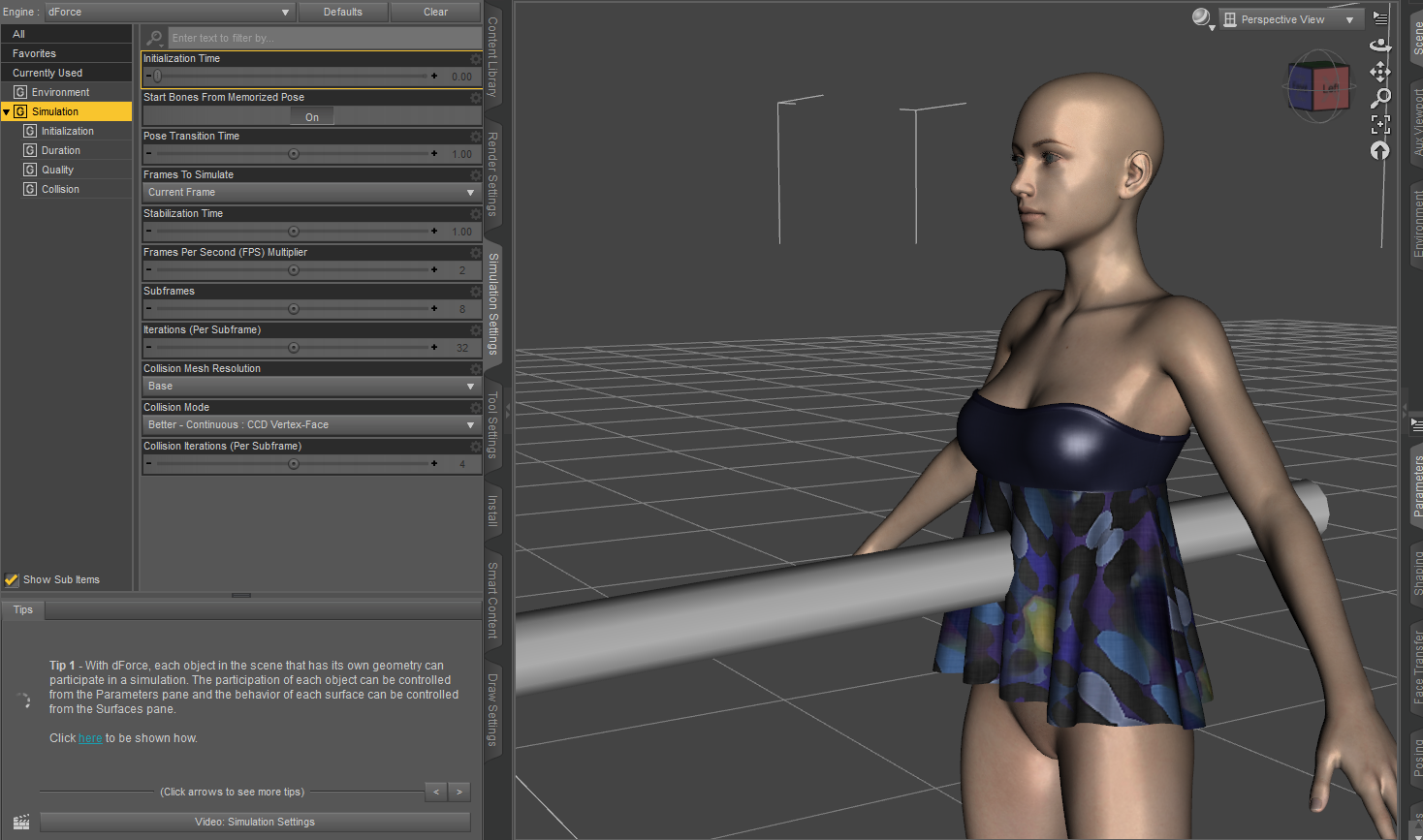 Есть такой вопрос: как сделать так, чтобы топик свисал с цилиндра, а не проходил сквозь него? Это реализуется с помощью dforce и если да, то как именно? Может есть мануалы поясняющие как провернуть этот трюк?