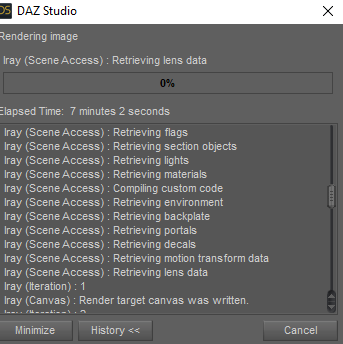 >>313605 Я в блендер ушёл. С даза только модельки и одежду таскаю. Cycles в блендере похож на айрей, и вроде немного быстрее работает. Eevee вообще не похож, зато за 15 секунд вот такое может нарисовать. Но он неточный. В блендер треде посоветовали вообще в UE5 перекатываться. В общем, вариантов - море. По логу выглядит всё вроде норм, покажи ещё лог прямо перед первой итерацией, там ничего про CPU не говорится? Если нет - у тебя точно на видюхе рендерится, хоть и не нагружает её.