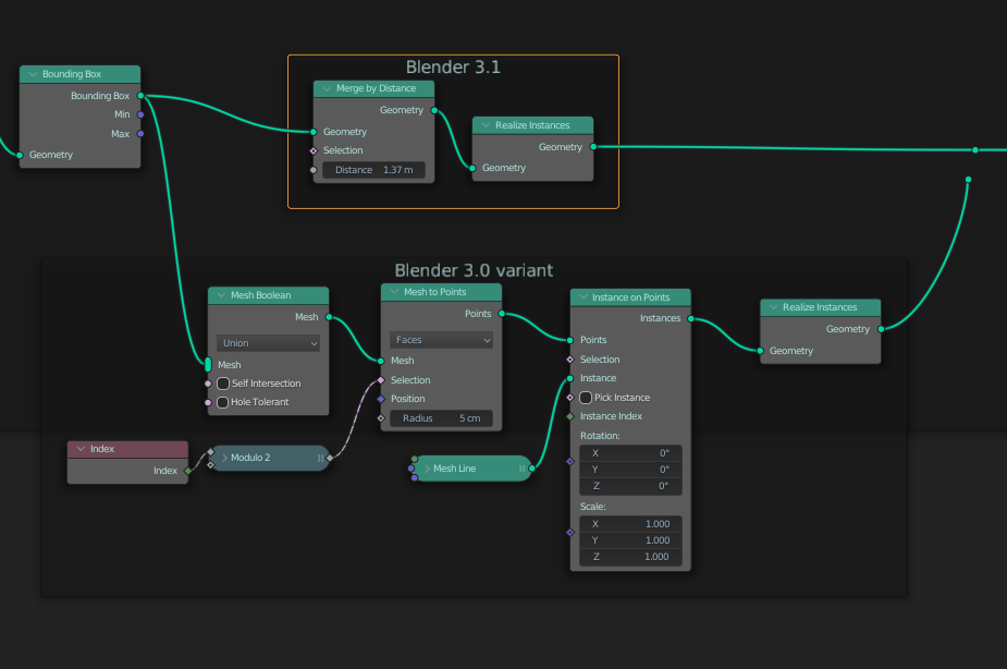 Смотри насколько более длинный костыль приходится прикручивать в 3.0 Но и в 3.1 это всё ещё костылик, потому что центр bbox для инстансов не считается корректно.