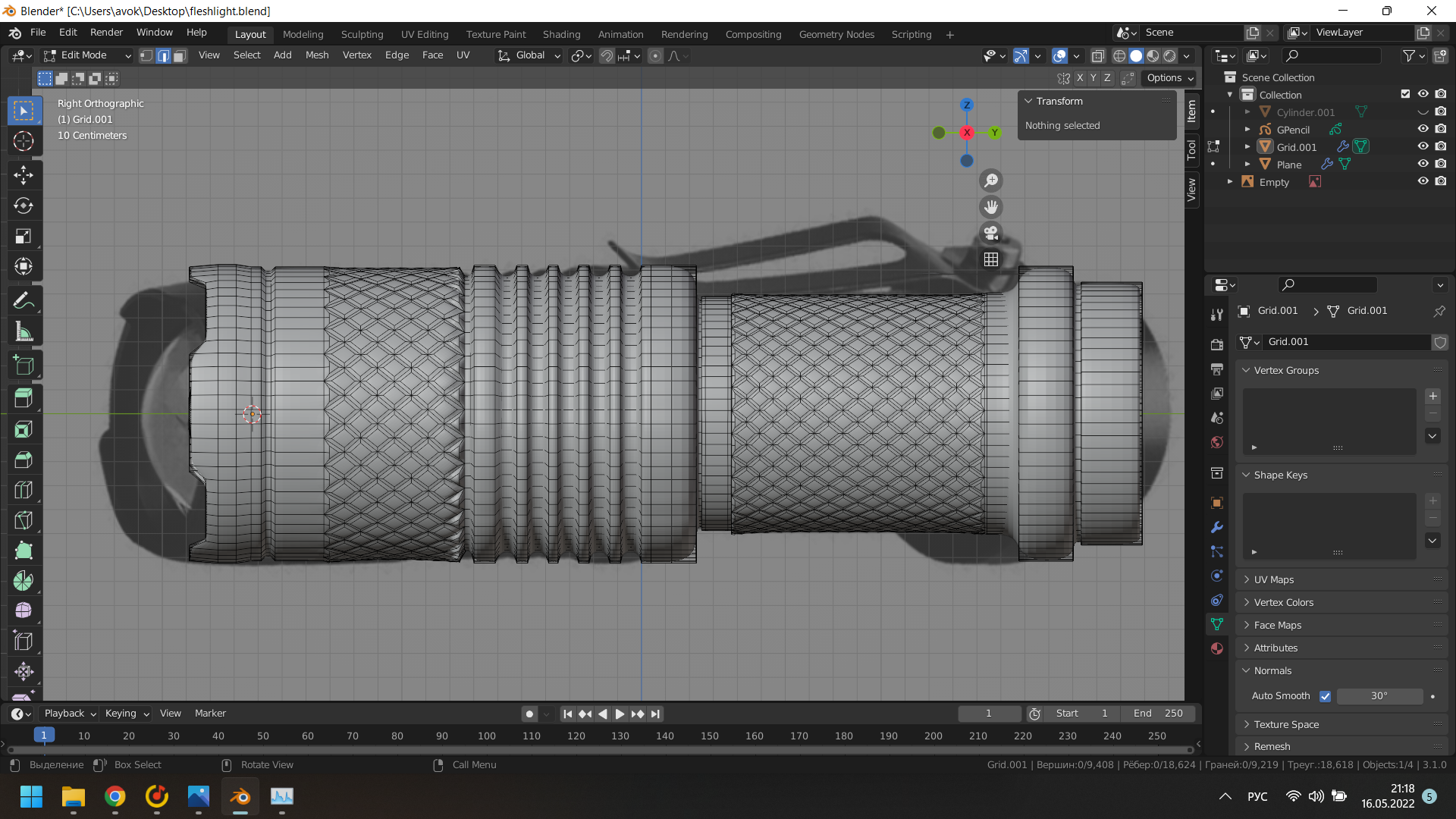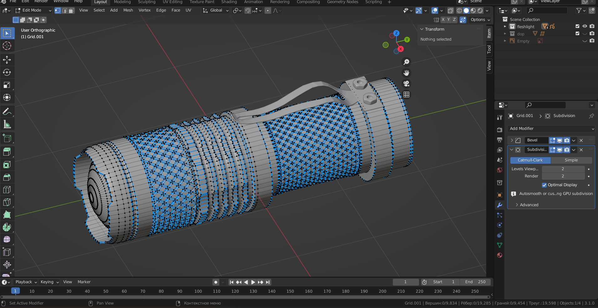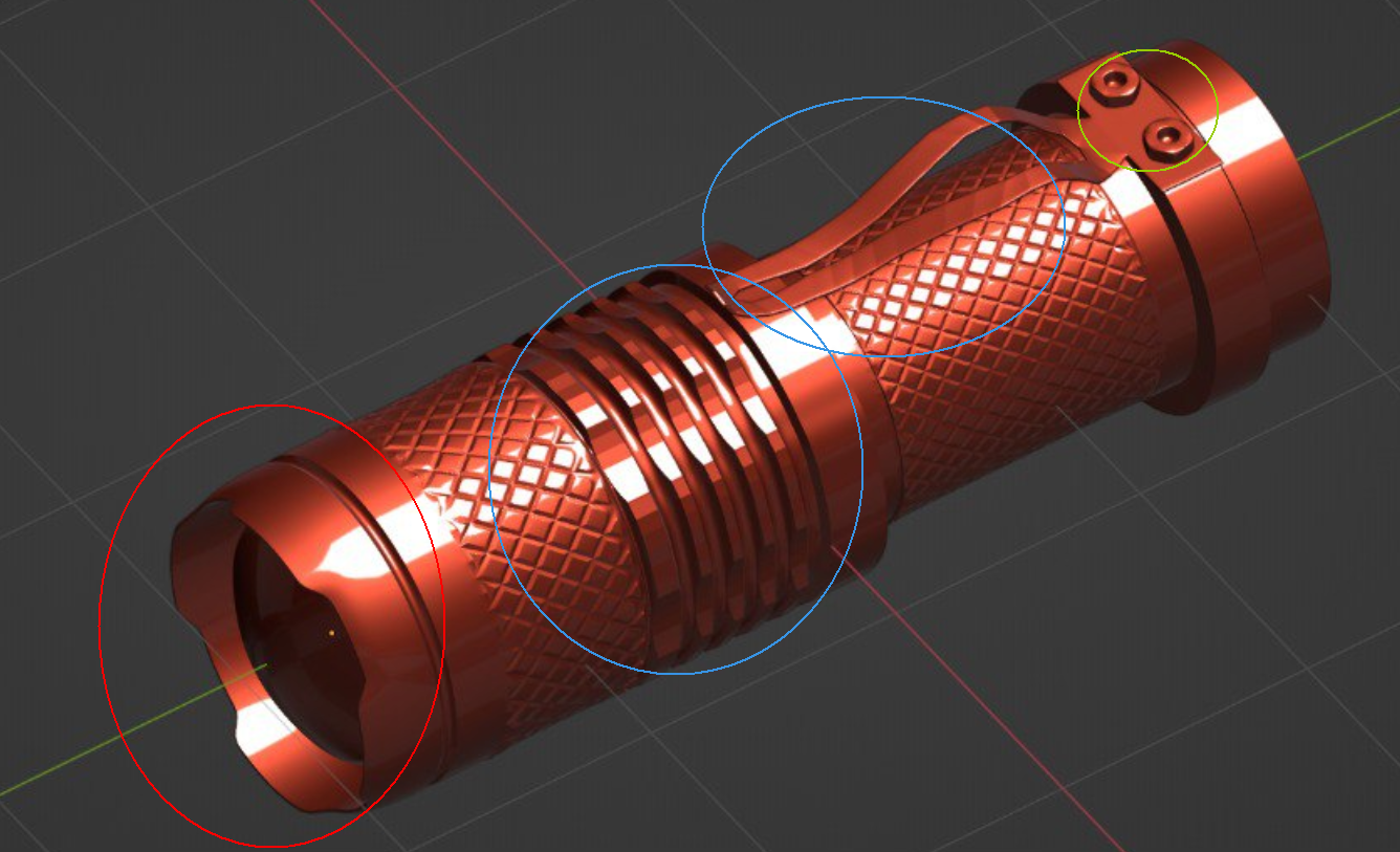 >>296718 Вот эти ребра через ринг селекшн выдели, и в значении бевела 0 поставь На зажиме если так же с лишним бевелом не сделал, просто добавь больше сабдива (я б еще чуть запушапил, чтобы толще был alt+S) Не делай все цельным куском, этот фонарь легко можно разбить на примерно 4-5 частей. Ребристую ручку уж точно следует делать отдельно, тогда ты не будешь привязан к плотности сетки и сможешь увеличить плотность этой ребристости.