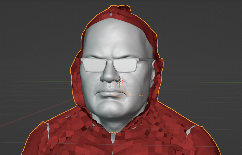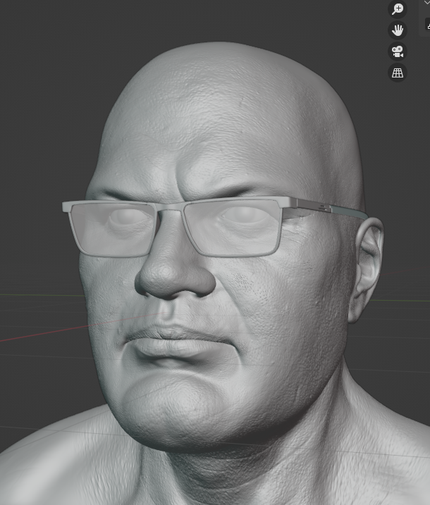 День 33 - доделал мелкие детали лица День 34 - смоделировал анатомически правильные глаза День 35 (сегодня) - смоделировал очки Модель такая себе, делал буленовские дырки на одном из элементов очков и получился пикрил перепад по полигонам. Как это править?