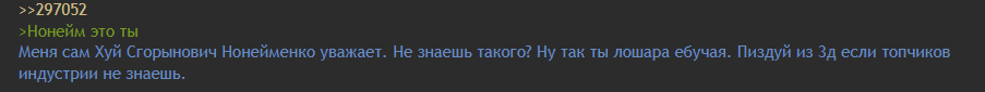 >>297052 >Нонейм это ты Меня сам Хуй Сгорынович Нонейменко уважает. Не знаешь такого? Ну так ты лошара ебучая. Пиздуй из 3д если топчиков индустрии не знаешь.