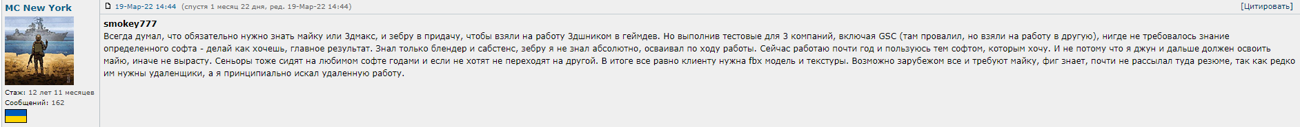 >>300100 Ну ты покажи уровнь продакшна, который они делают, тогда поговорим. А то сейчас гомон, будто речь о квадриплА студии, которая сэкономить хочет. И где там заявления о том, что нужно работать за троих? Это позиция лида. Понятно, что весь пайплайн нужно знать, чтобы фриланс макак контролировать и вилкой, если что, за ними подчищать. Короче если честно, то ты звучешь как чел, который вообще в индустрии не работал, но при этом судит о чем-то по вакансии на хахару. Собственно, даже в вакансии написано о твоем самом разделении труда. Но ты или слишком глуп, чтобы это увидеть, или же просто троллишь тут.