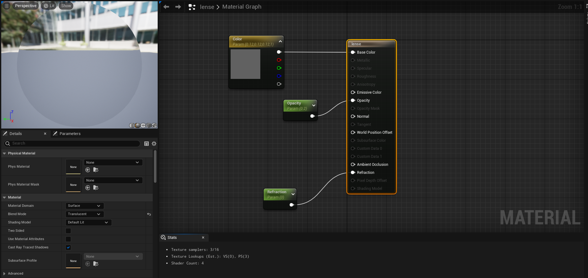 Есть референс в виде дефолтного глаза метахьюманов, который, конечно же, пиздец какой тяжёлый и не годится под рилтайм. Так что я решил пилить свои материалы под глаз и под глазную линзу. Пик1 сравнение оптимизации Пик2 - меши глаза и линзы у левого специально убрал меш линзы для скриншота, чтобы было видно как сделано глазное яблоко. Линза в данном случае нужна для симуляции рефракшена (Пик3)
