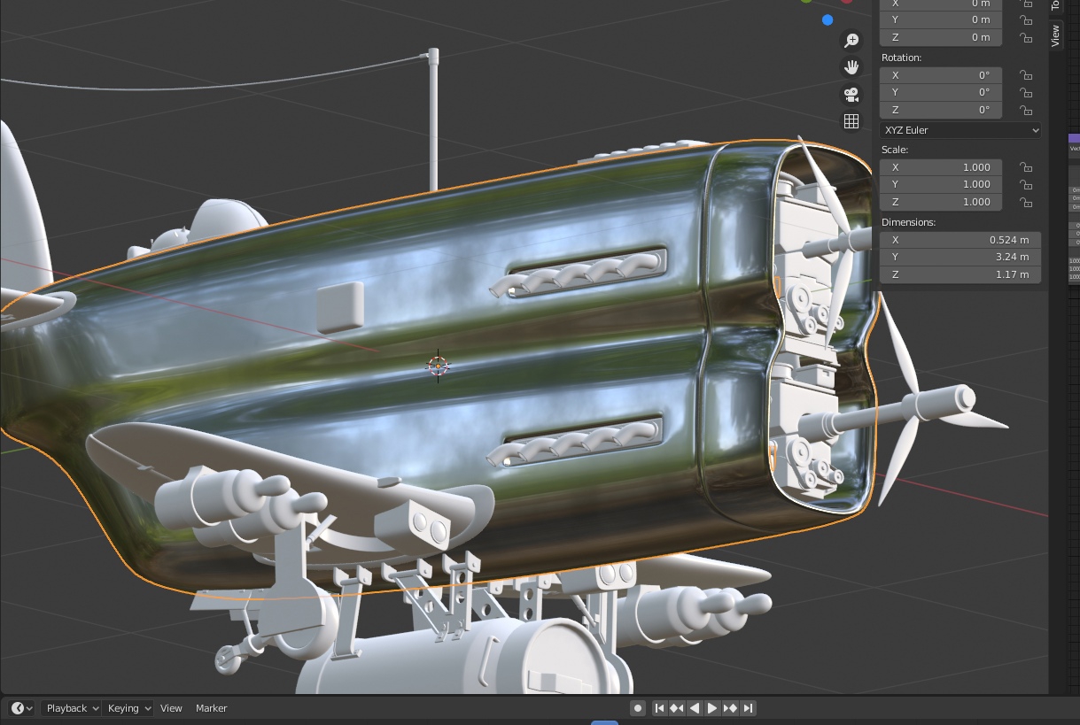 Насколько правильна идея делать корпус из большого количества отдельный мешей? Типа вот я сейчас сделал широкую часть корпуса с аркой, сейчас сделаю отдельным мешем часть за шлангами, потом сами шланги и т.д