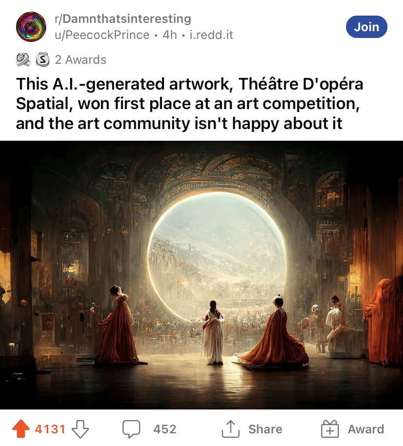 >>304349 >>304350 У сойбоев, которые 5 лет учились в художке и еще столько же задрачивали скилы, нарабатывая портфолио, неимоверный пожар в пятой точке. Последний раз я такую истерику видел в 2016, когда Трампа избрали.