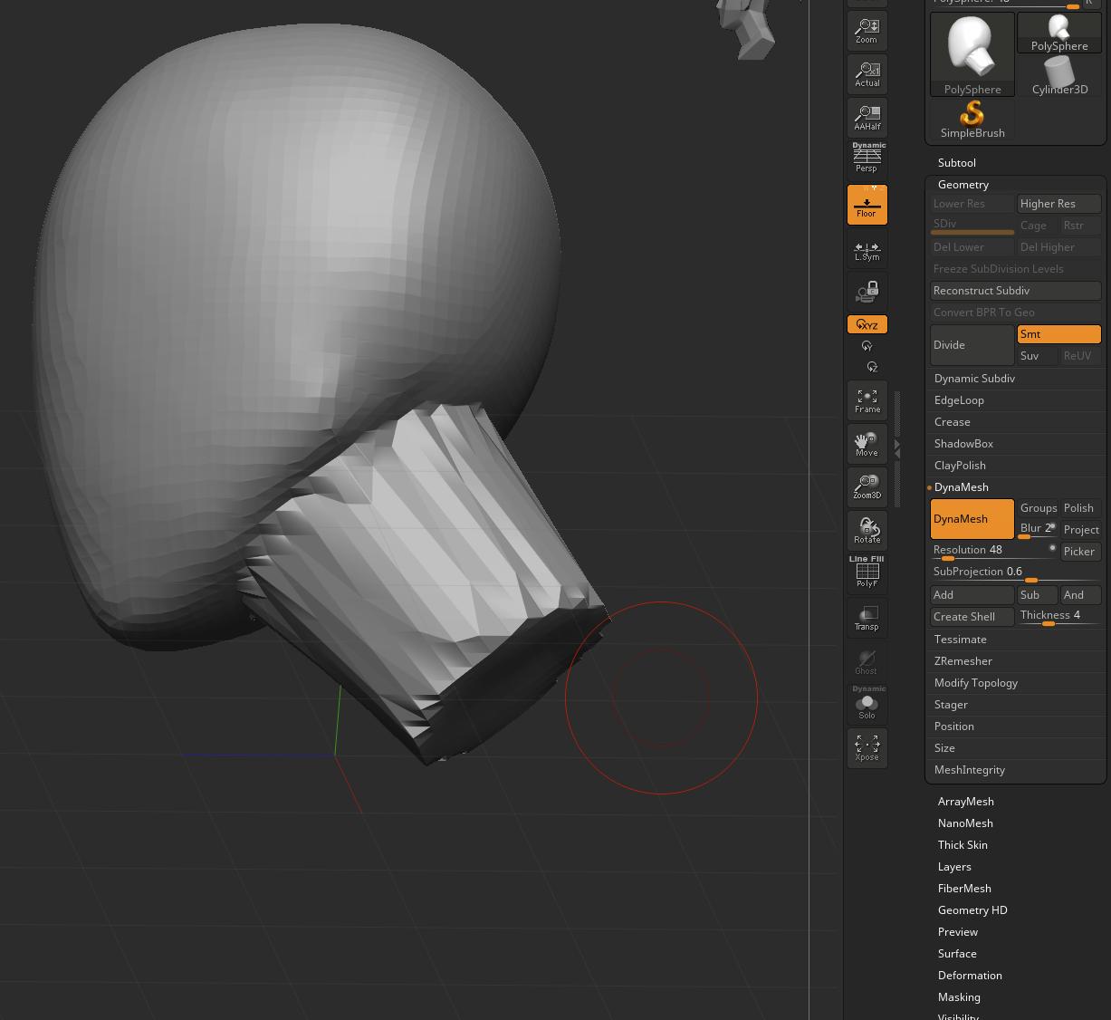 Всем привет. Недавно начал изучать zbrush и что -то в нем пробовать. Сделал палку и при помощи маски сделал деформацию. Вопрос, а как убрать это искажения? Да я знаю, как вариант на границе сделать маску и её заблюрить, потом шифтом сгладить. Или же, изначально сделать морф таргет и кистью морф поправить, а потом тоже шифтом сгладить. Я прекрасно понимаю, что из-за деформации полигоны смещаются. А как сделать что бы не было уж так сильно? Даня меш и зет ремешер не то будет. Помогите.