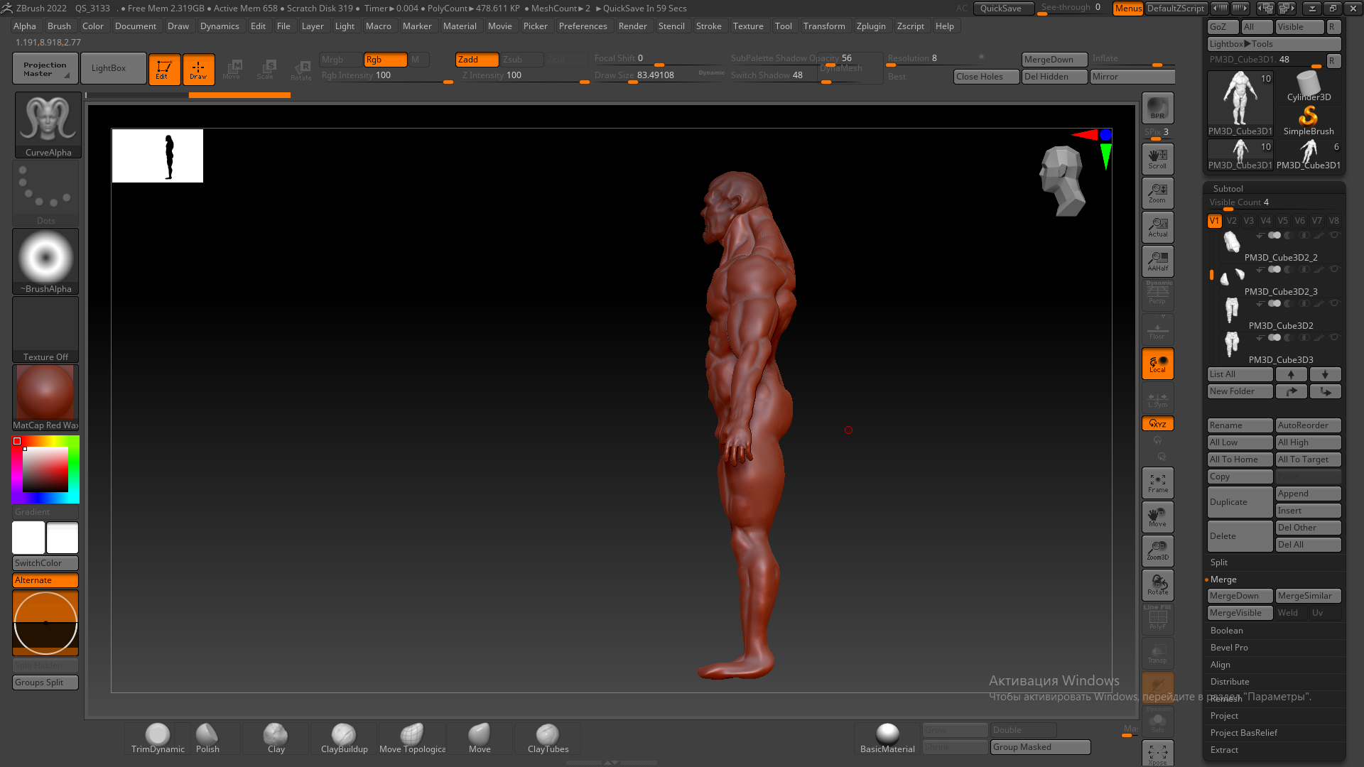 Решил, в общем, начать лепить первую законченную модель. Модель будет немного стилизованная, поэтому грудная клетка меньше. Было бы неплохо услышать фидбек по пропорциям и прочему. Пока выстроил блокаут.