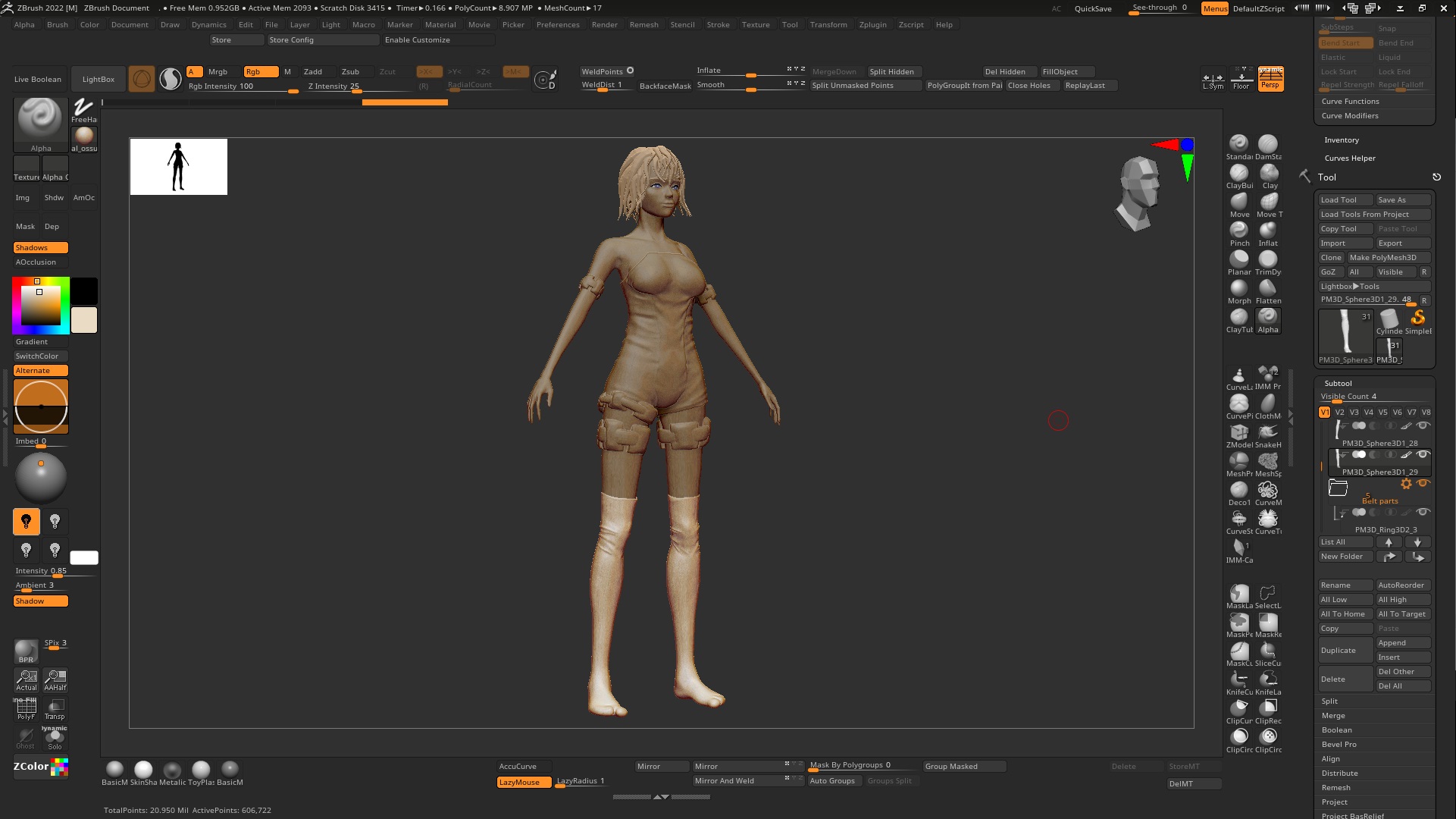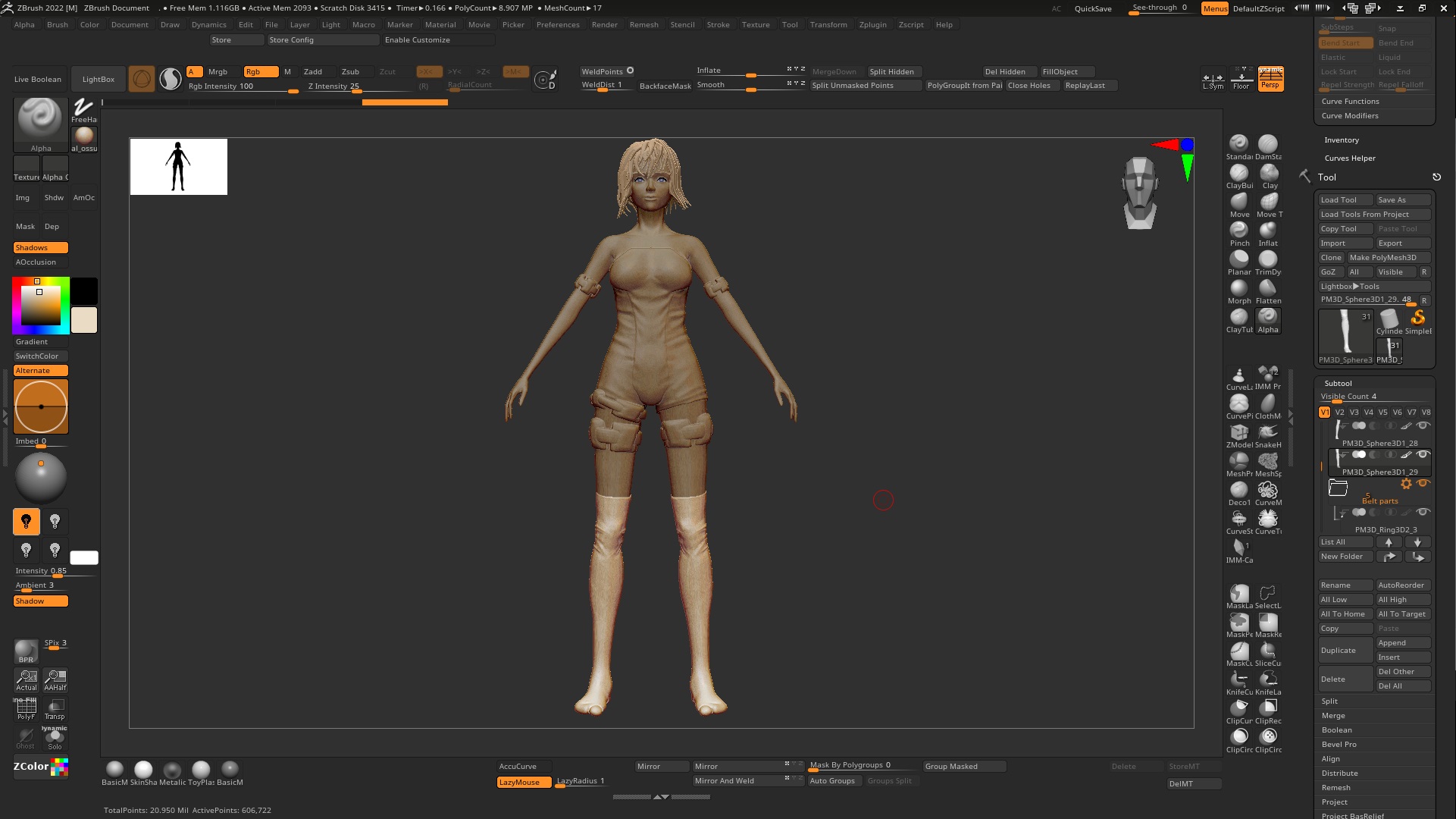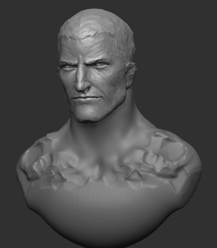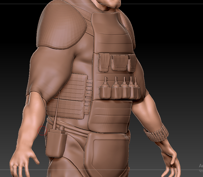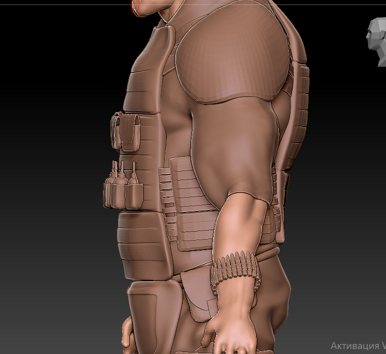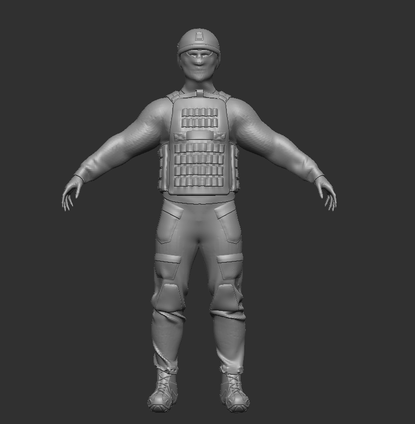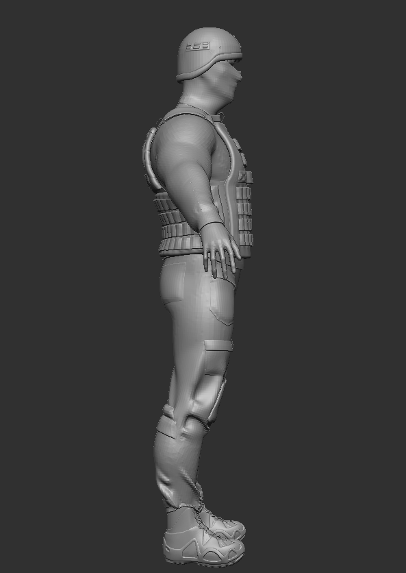 Последние дни выдались весьма загруженными. Не успевал толком лепить. Вот так на данный момент выглядит модель. Полностью перешел от дайномеша к сабдивам. Форму стало очень удобно изменять. Планирую поправить лицо и поизучать блендер для создания нормальных ремней и ботинок. Хардсурф в зебре это какой-то ад для меня.