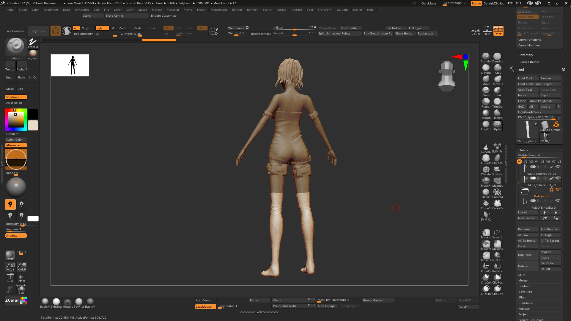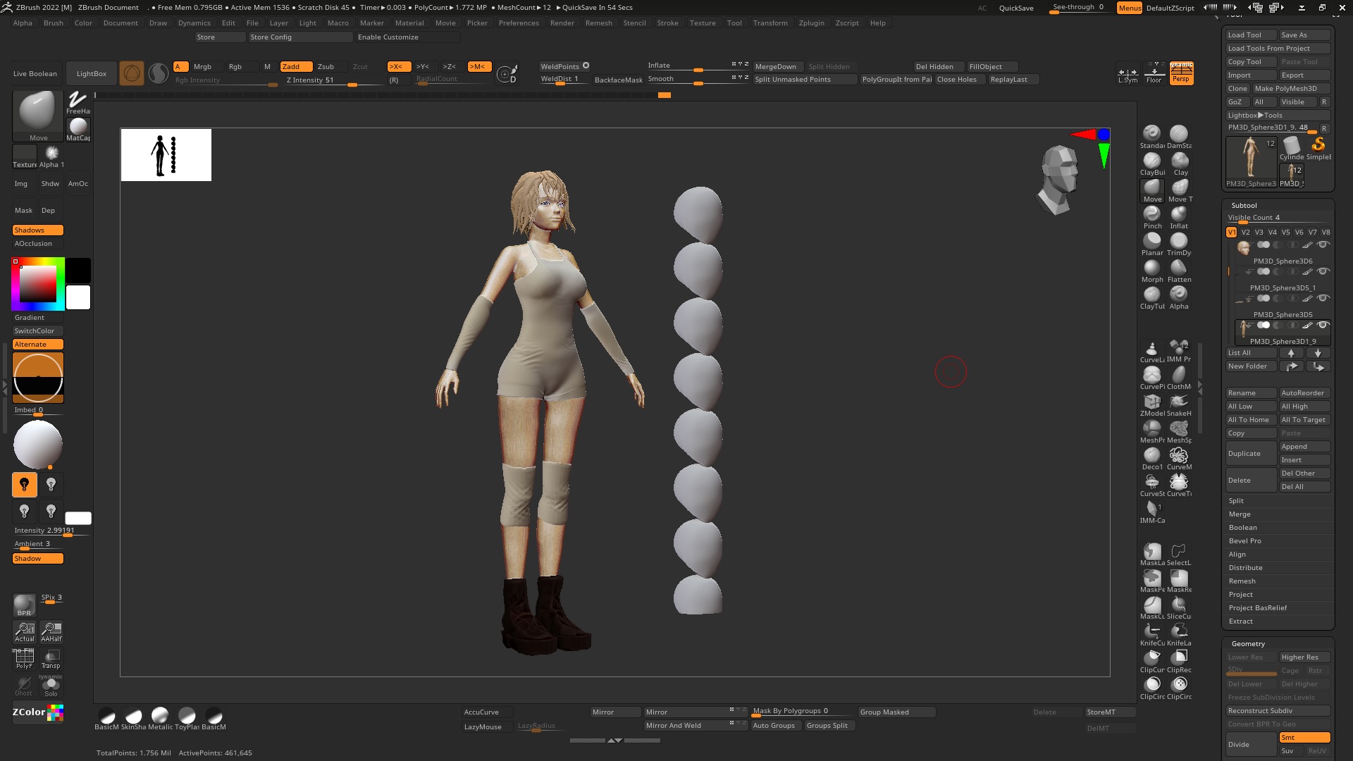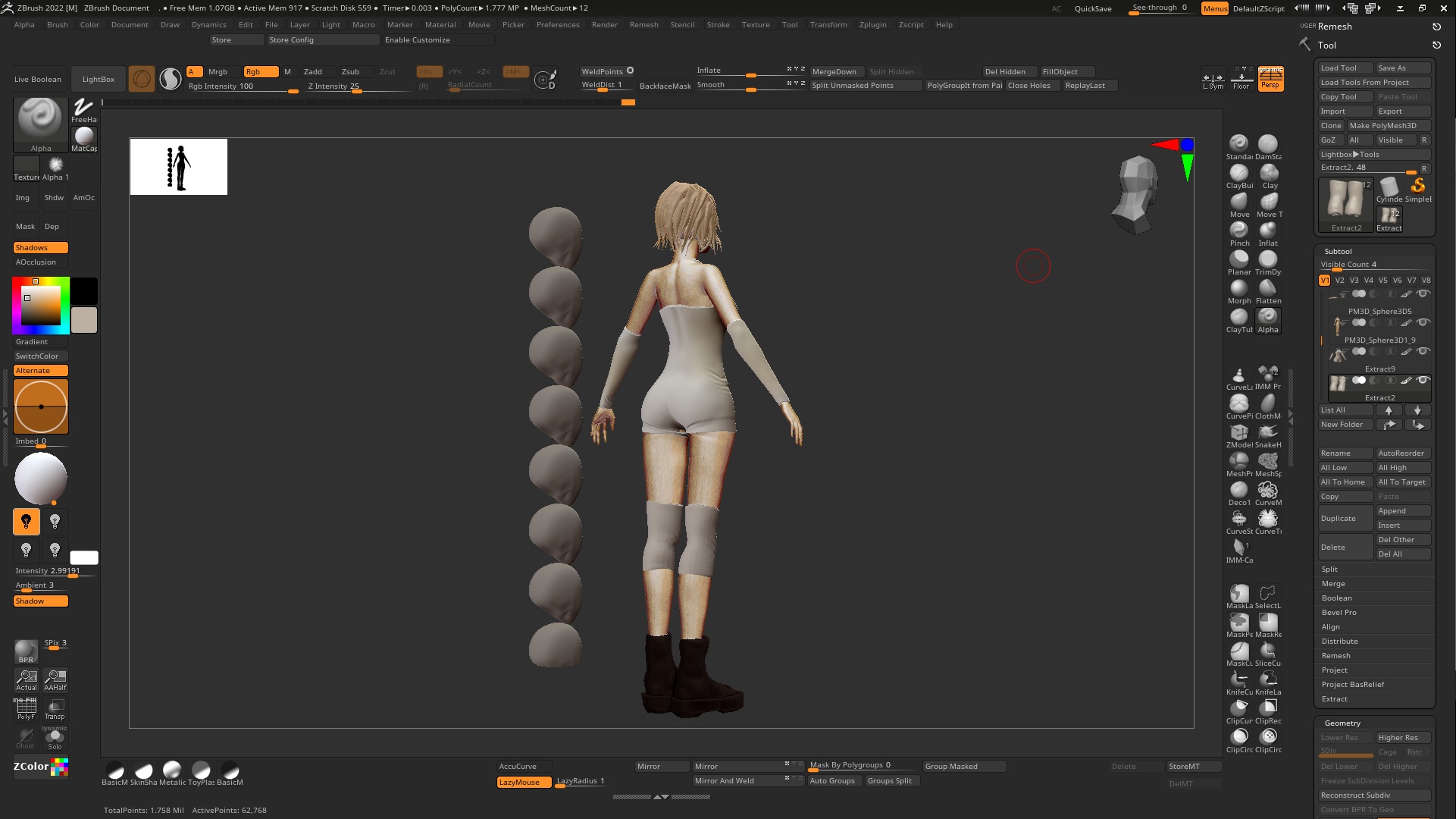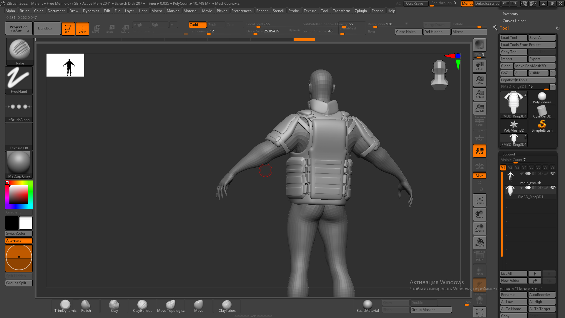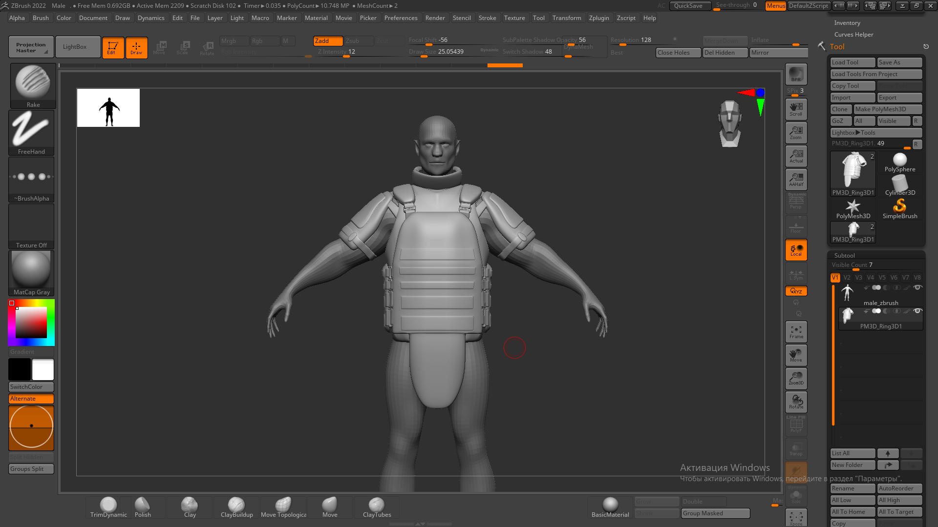 Последние дни выдались весьма загруженными. Не успевал толком лепить. Вот так на данный момент выглядит модель. Полностью перешел от дайномеша к сабдивам. Форму стало очень удобно изменять. Планирую поправить лицо и поизучать блендер для создания нормальных ремней и ботинок. Хардсурф в зебре это какой-то ад для меня.