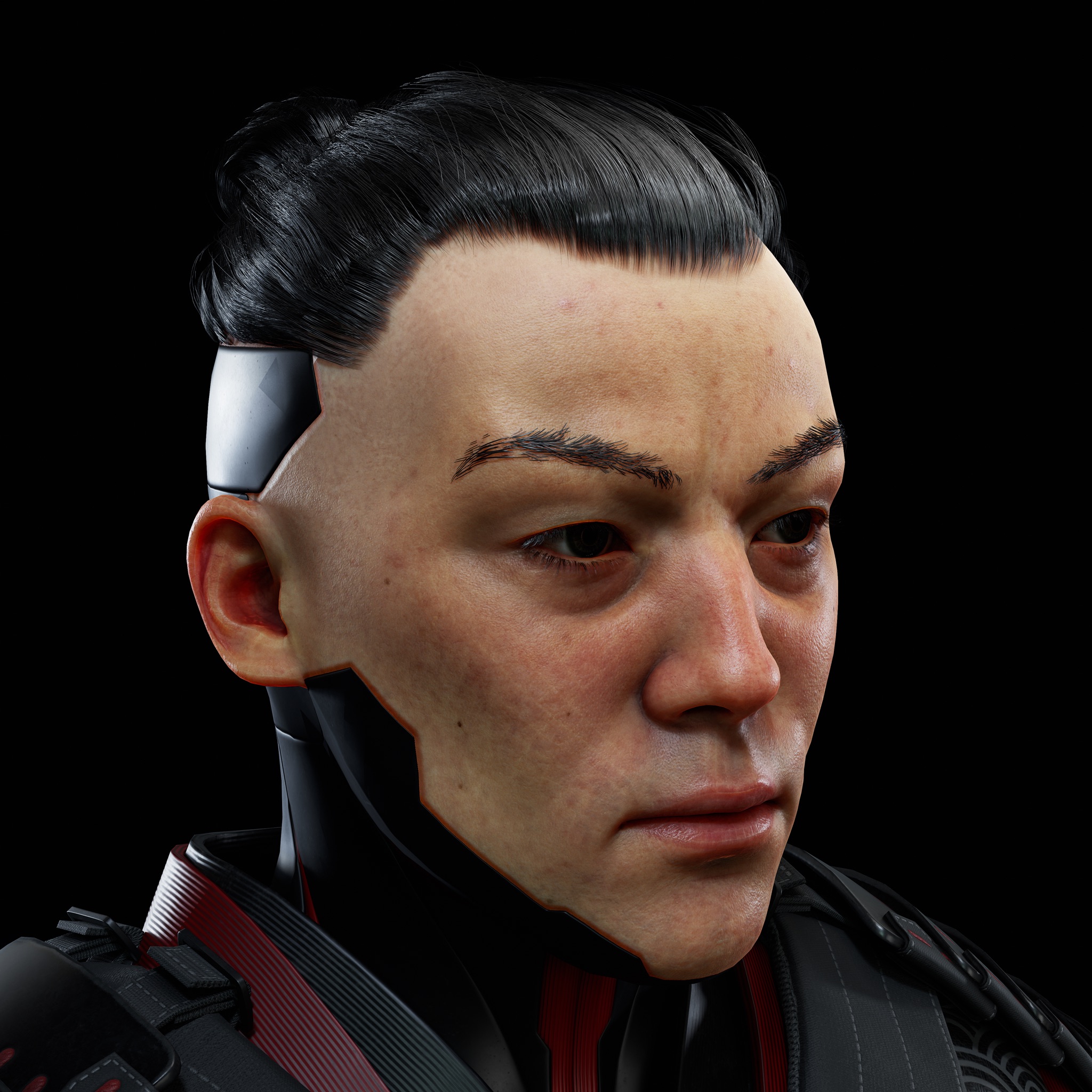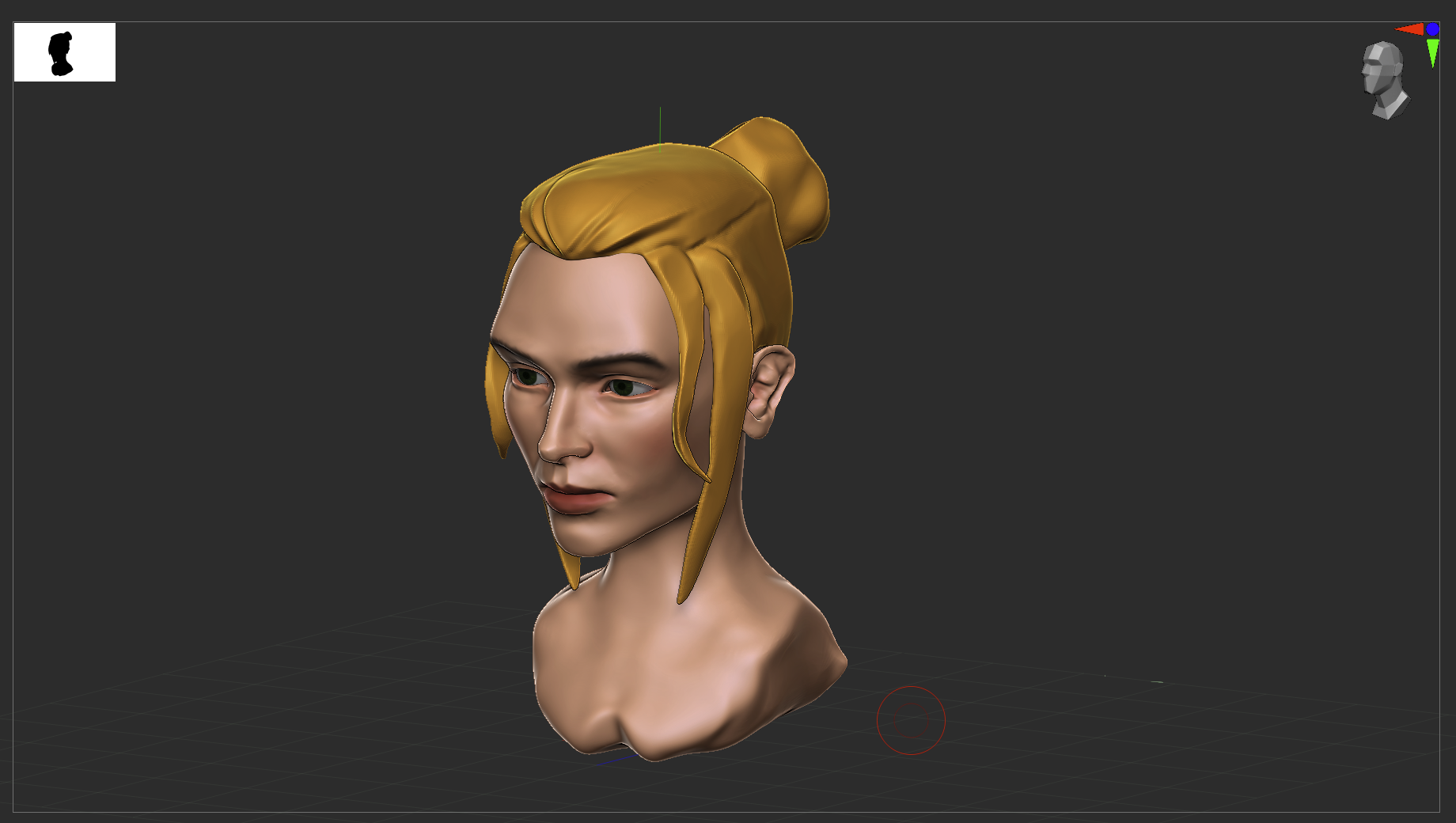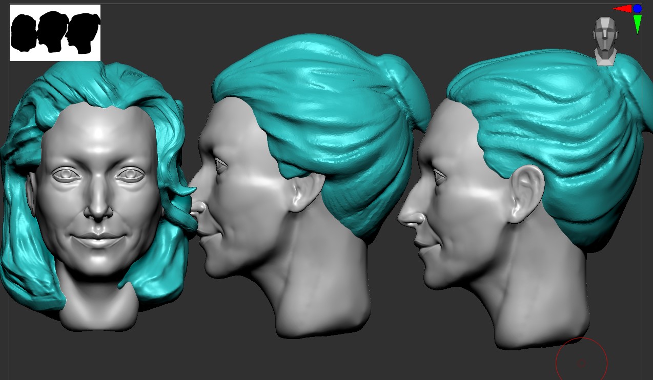 Сегодня сделал лицо и кое-как налепил волосы. Волосы прям с боем дались, надо будет попробовать файбермешем их переделать. Сейчас начну ремешить модель под сабдивы и добавлять анатомию.