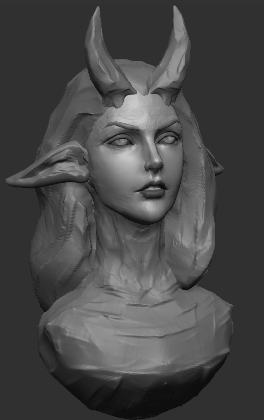 Ну и волосы это...Та еще залупа, даже просто локоны оч сложно распределить чтоб не скучно было, а о аккуратности\их текстуринге даже помышлять грешно, в моем положении.