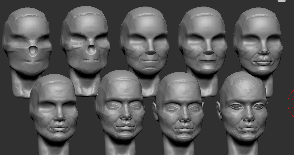 (ты 100 раз лепишь один и тот же череп по одному и тому же референсу и на 101 раз у тебя получается точная копия референса)