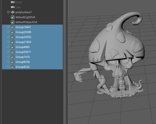 В общем я потыкал майку. Пришел к выводу если хочется контроля при экспорте из зебры, то нужно либо отдельные меши юзать, либо назначать материалы...Полигруппы зебрянские майка не любит.