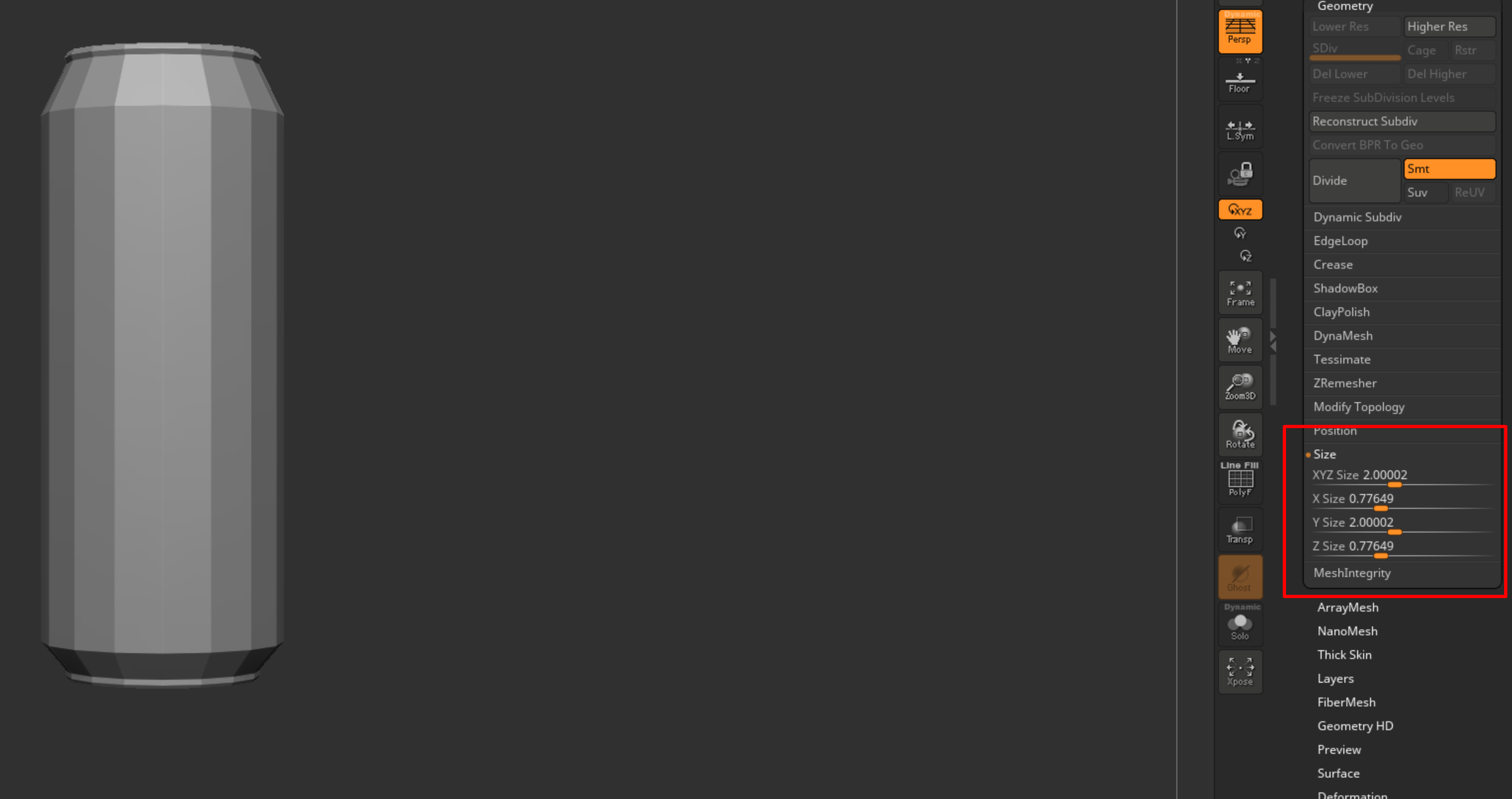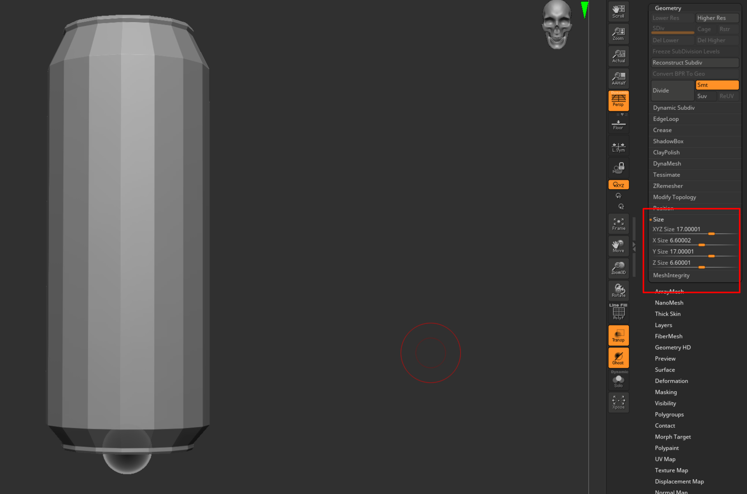 Вариент 2: если надо сделать что-то сразу в зебре, при этом надо чтобы размер был задан прям в сантиметрах. Скульптим в динамеше крупные формы, зРемешим, накидываем сабдивы, прожектим. Теперь у нас норм модель в сабдивах. Беру первый сабдив, выгружаю в обж,импорчу в майку, масштабирую до нужного размера, экспорчу готовое снова в обж. Далее в самой зебре перехожу на верхний сабдив, включаю запись слоя, потом перехожу на нижний сабдин, и прям поверх этого сабтула импортирую свой отмасштабированный обж - это важно, потому что фбх тупо другим сабтулом может импортится, нужен именно обж. Если ты топологию не модифицировал(порядок и кол-во вертексов не менял), то зебра подменит твой первый сабдив на новый, а все верхние детали сохрантся.Делее снова на последний сабдив и бейк слоя. Все, больше нигде масштаб крутить не надо и при экспорте в обж из зебры размер так и будет оставаться тем, который я выставил в майке.