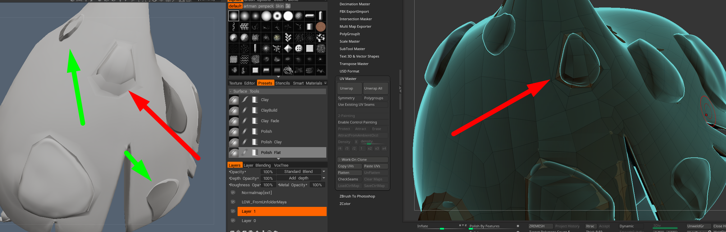 Не знаю, даже если найду решение, то это всего-лишь камень мелкий, а что если блять фулл перса делаешь, я просто не представляю как все это прибирать...Сидеть и трястись во время скульпта, как бы шаг вправо-влево не сделать, потом во время ретопа гладенькие поверхности разъебывать лишь бы лоуполька на милиписечку не выглядывала из под хайпольки..Дичь, не верю что так это происходит...Любой видос врубаешь там у людей нет таких проблем, они просто без задней мысли ретопят по фану, половина лоуполи из под хайполи торчит, везде углы несовпадения, а результат все равно ок. Почему я тогда страдаю сижу?