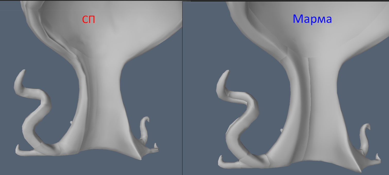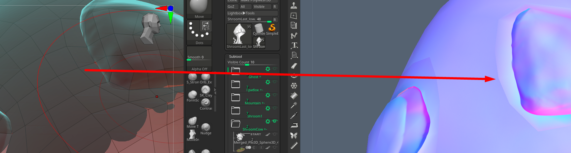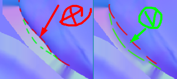 1 пик. Полностью в хайпольку лоупольку запихал без соприкосновений со стенками, итог предсказуем, но тогда вопрос на засыпку, как пекут скульпт на экстримально незкий полигонаж.... 2 пик. там тоже выходы хайпольки за лоупольку есть, но в одном место норм печется, во втором опять этот злоебучий отступ.