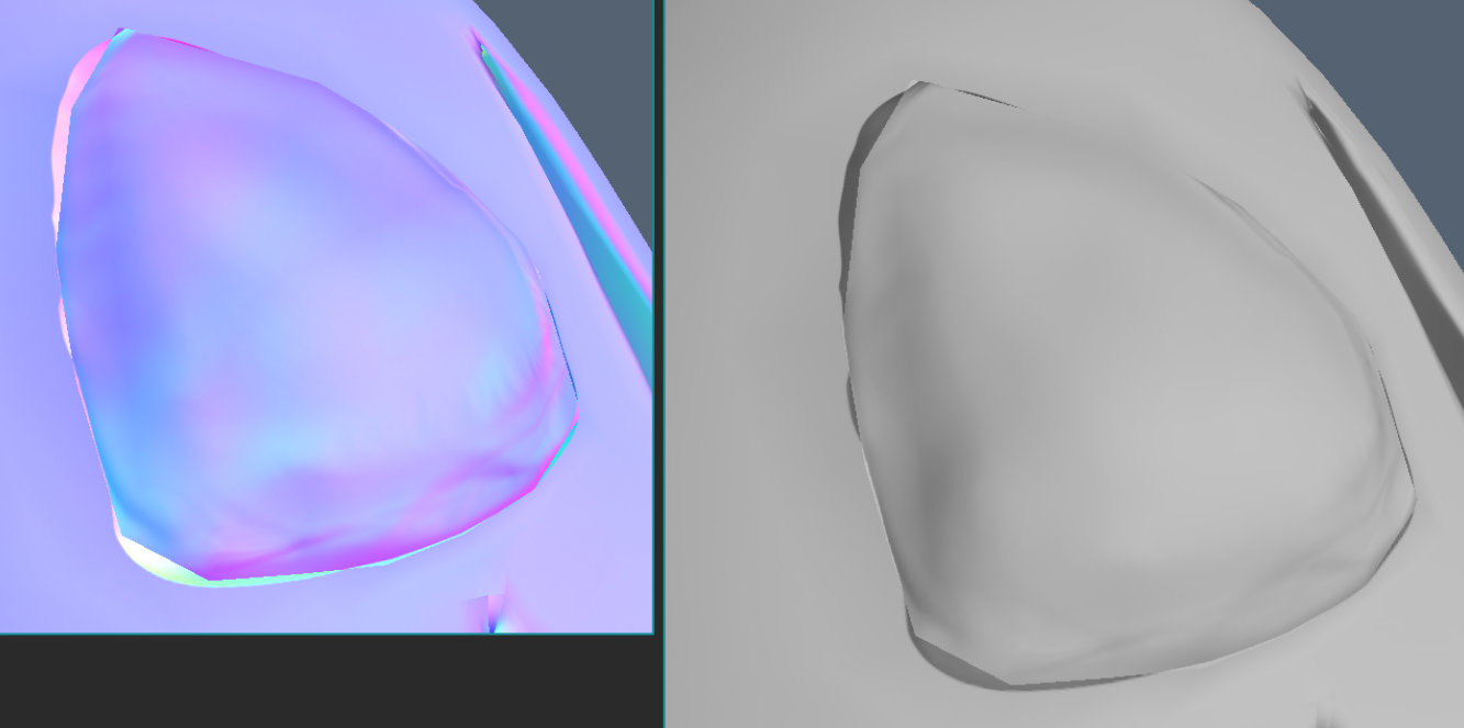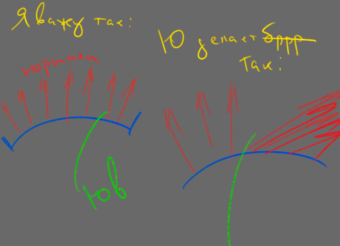 И еще пик 2: я спецом перенес шов потестить как будет. Почему его так сильно выделяет? там же не такой бешенный перепад в градусах? Почему после того места, где ЮВ шов, так сильно косоебит отображение нормалей, хотя на лоупольке видно что нет такого пиздец.