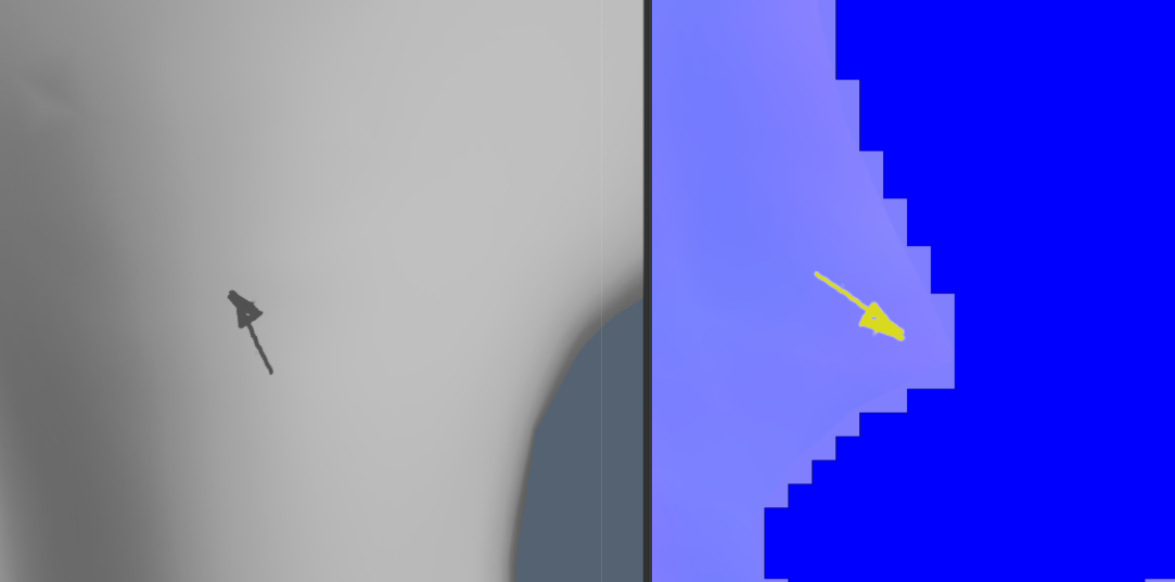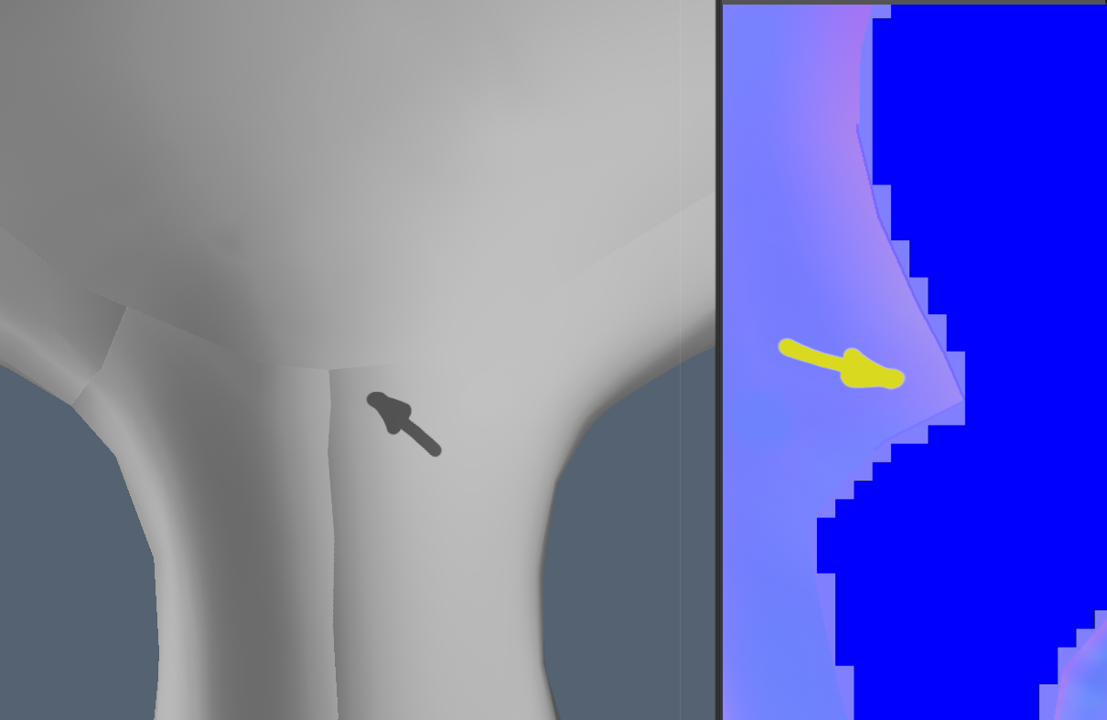 А не отбой с >90градусами, там тоже лоуполька вылезла...Но просто оцените какой зум надо делать чтобы увидеть это... А что делать с высокодетальным персонажем? Реально каждый сантиметр его тела зумить? Или бесконечно запекать перезапекать? Это нездоровая какая-то хуйна. Неверю что нет решения автоматического.