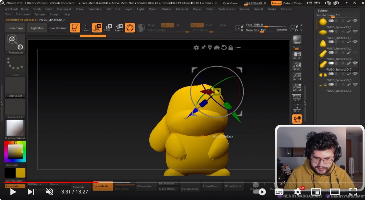 >>326752 Пройти introduction to zbrush, любого года. А потом догуглить What's new, в промежутке версий который пропустил. У тебя может пару вертексов маской зажало вот и тянет, да и pin хз зачем нажат на гизмаре.