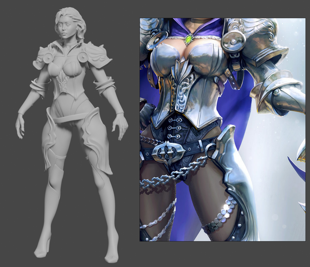 Мой прогресс от всратого скванчи до более менее стандартной фэнтези бабцы. Осталось ей только мелких побрякушек налепить и можно делать лоуполи. Рыцарессу делал по курсу этой лысой башки, люто рекомендую смотреть всё , что он делает, отличный препод. Прическу, ебучку и сами доспехи только решил делать по другому рефу, чтоб не повторять модель один в один.