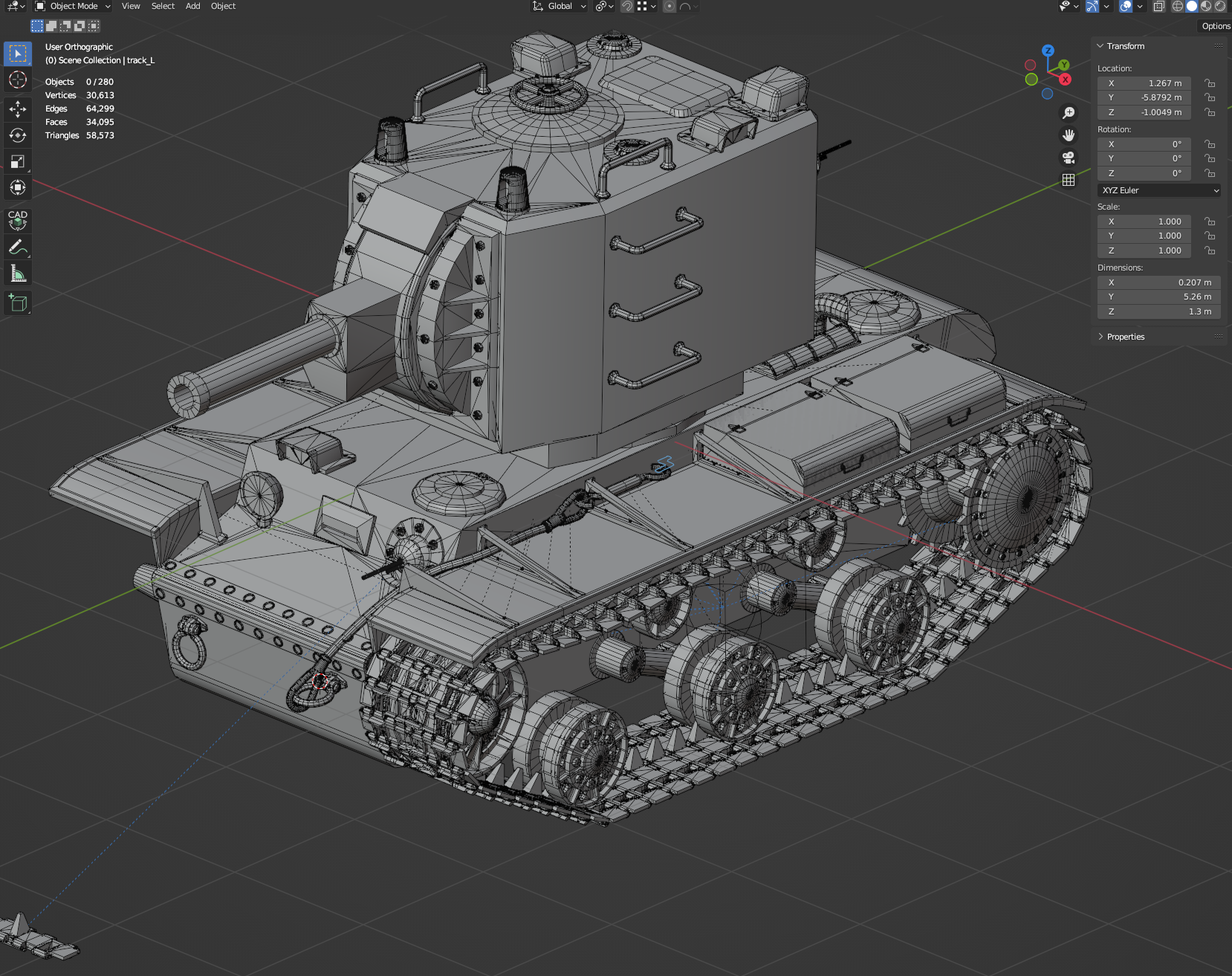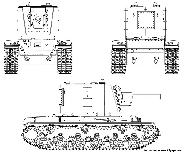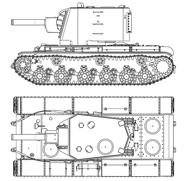 Алсо, у тебя башня с фасками. Если это хайполи, то предлагаю сделать там видимый сварной шов на башне. Как на первом пике. Т к кв2 не имел литой башни.