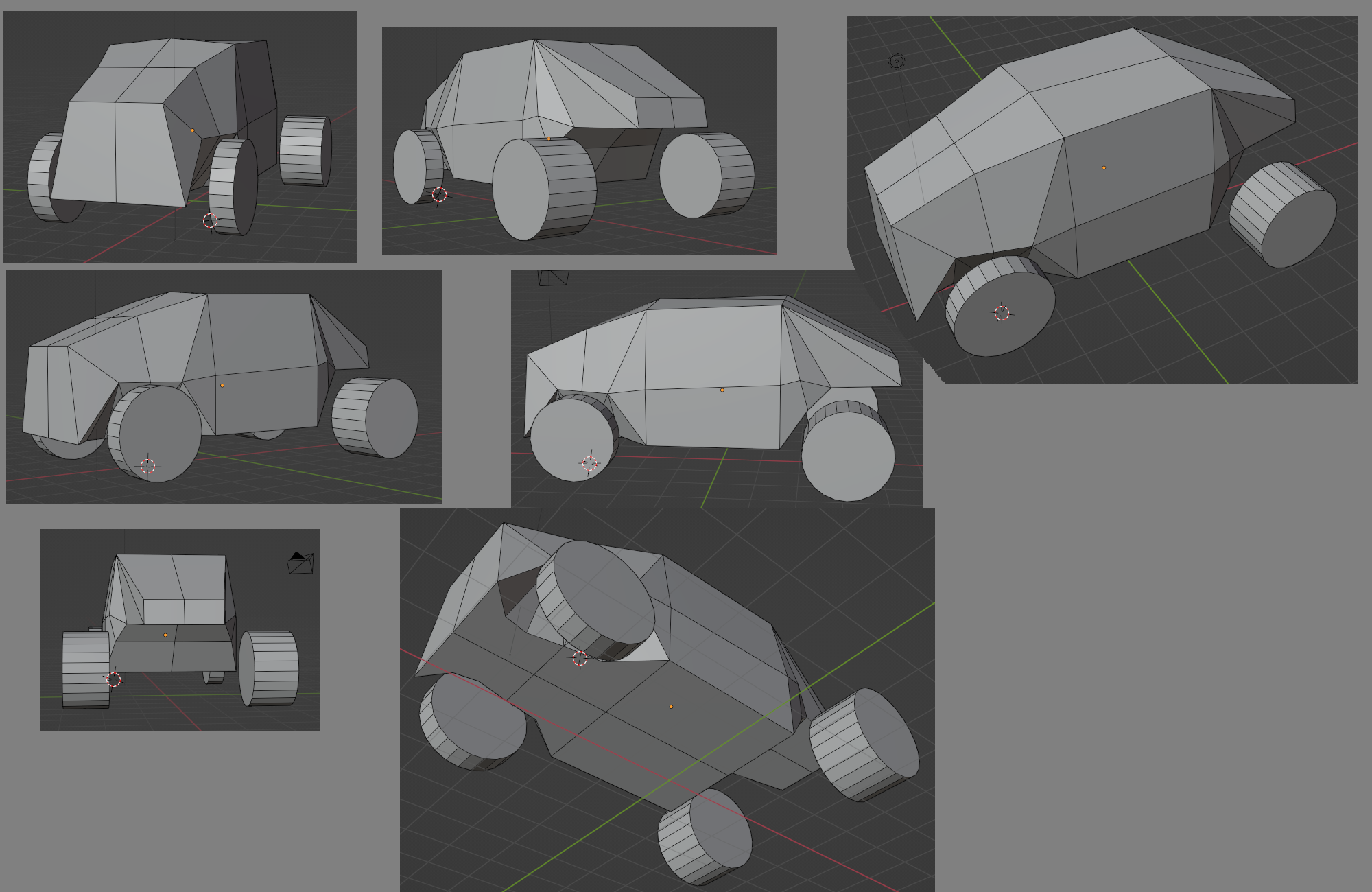 >>323622 С равномерной плотностью сетки проебался. Если уж делаешь лоуполи "три полигона в два ряда", то и колеса делай 8-угольниками, или 12-угольниками хотя бы.