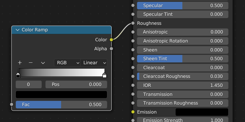 >>324002 >Можно пожалуйста быстрый туториал по шерховатости? > >1. Чёрное это будет блестеть или наоборот? >2. Нужно ли ещё что-то подключать между шейдером и колор рампом?