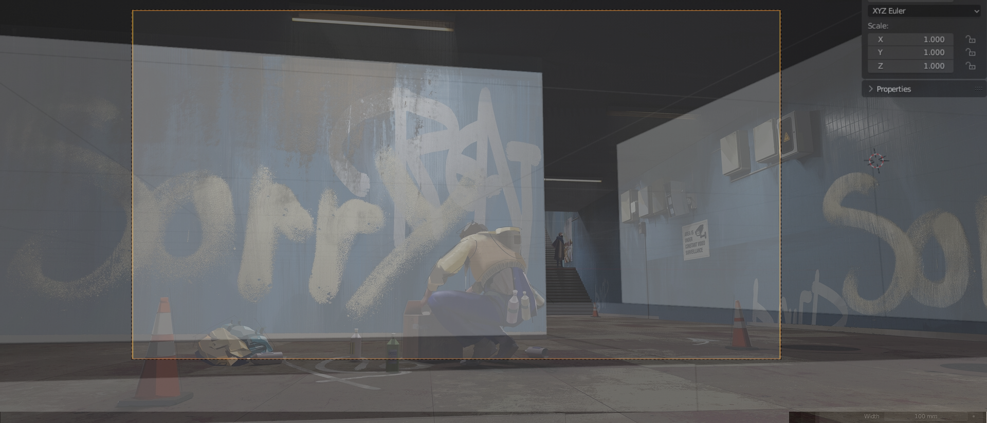 Хочу повторить сцену как на арте. Как подобрать фокусное расстояние и положение камеры? Пробую рандомно поставить камеру, она заходит в полигоны и вообще хуёво получается, будто бы стены не 3 метра, а 50см.