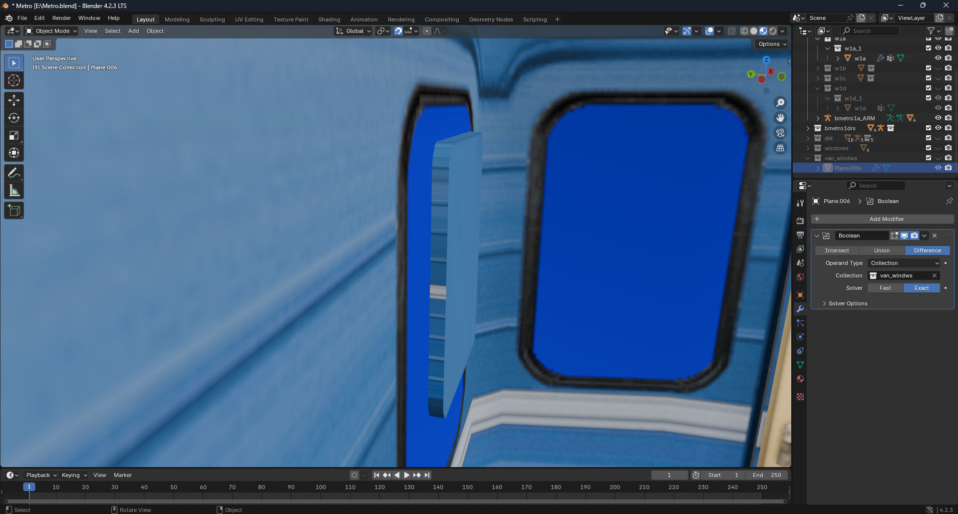 Кстати, в консоли написано следующее, не знаю связано ли: Dependency cycle detected: OBPlane.006/INSTANCE() depends on OBPlane.006/GEOMETRY_EVAL() via 'Transform -> Instance' OBPlane.006/MODIFIER(Boolean) via 'modifier stack order' GRvan_windws/GEOMETRY_EVAL_DONE() via 'Boolean Modifier' OBPlane.006/INSTANCE() via 'Collection Geometry'