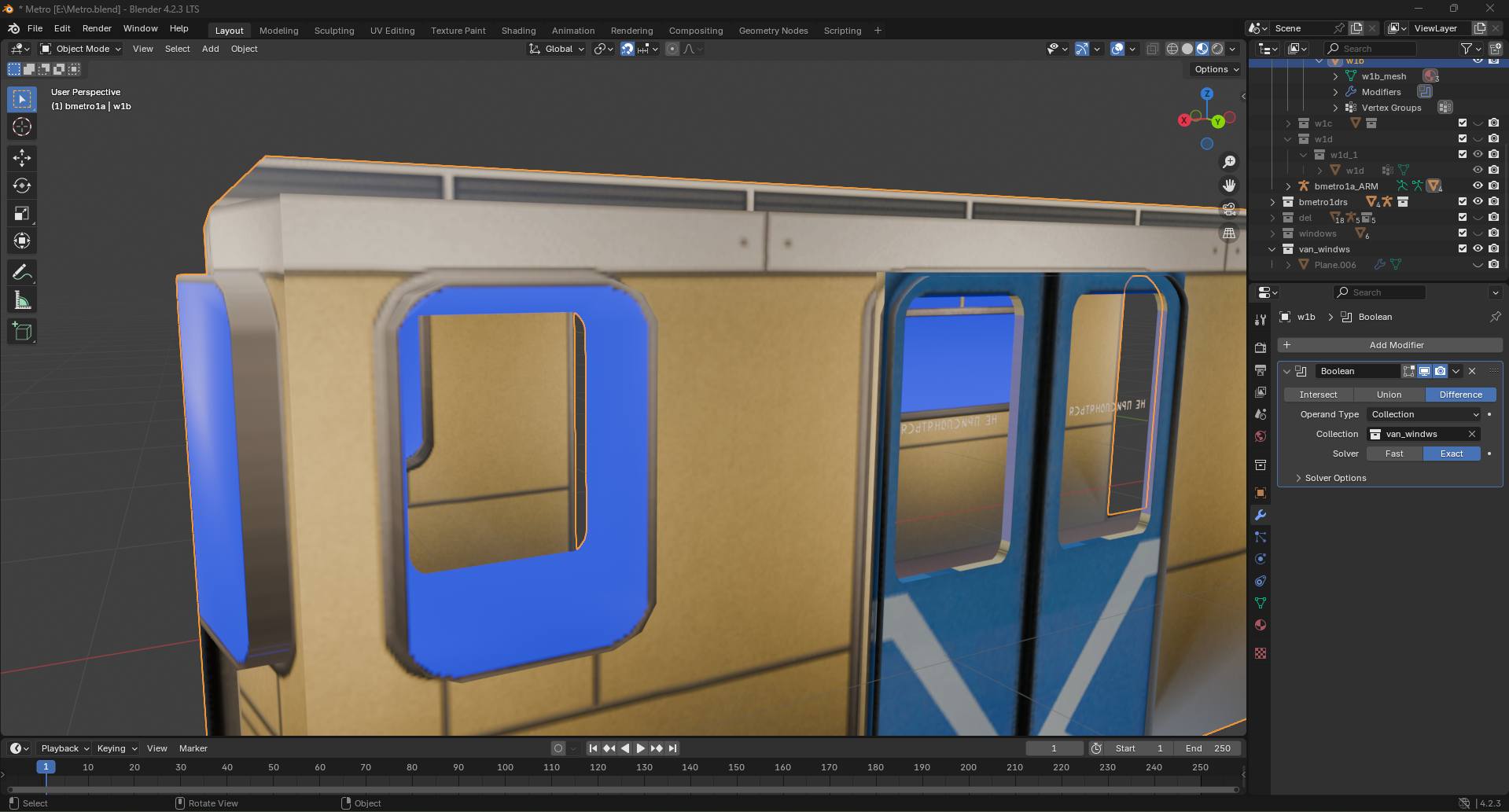 >>323454 (OP) Сап, блендероанончики! Подскажите пожалуйста, в чём может быть дело: пытаюсь вырезать окно в меше с помощью boolean-модификатора с опцией difference, но вместо этого оно вдавливается. При это для другого объекта в той же коллекции отверстие замечательно вдавливается (пик3).
