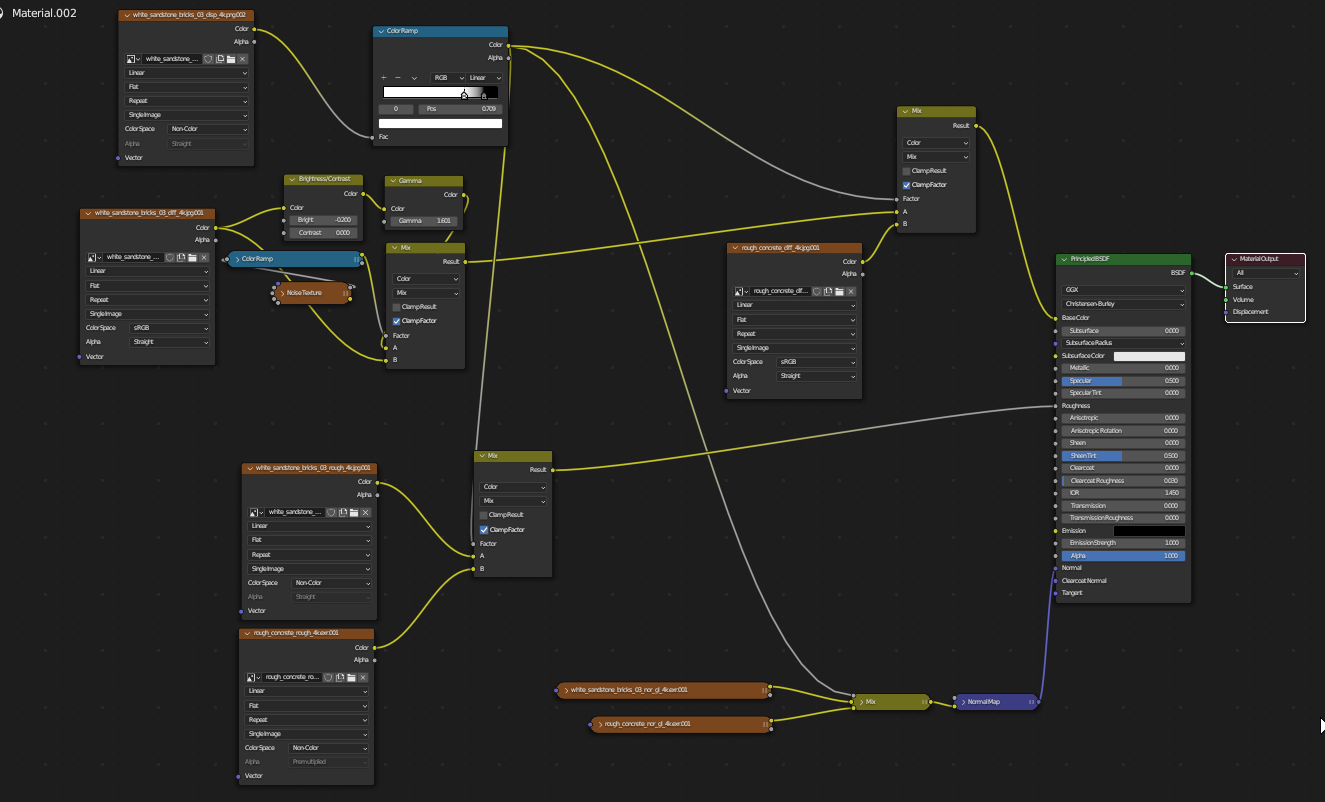 Сап. Есть кирпичная стена. У стены часть кирпичей темная. По референсу видно что кирпичи ярко выражены. Для реализации я использовал две текстуры, в качестве карты размещения, чтобы очертания кирпича были точными я использовал карту дисплейсмент и колор рамп. Однако при добавлении на объект я заметил что текстура сильно тайлится. И я не понимаю каким образом мне этот момент исправить. Дайте совет какой-нибудь. На скриншоте я немного сдвигал части руками части изображения через uv карту, но думаю это не совсем правильный путь. В посте первым идет референс.