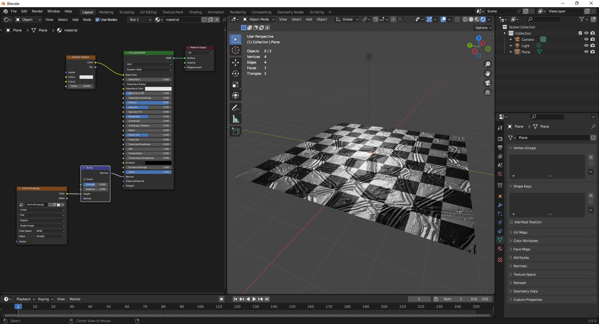 >>324330 Давай пердставим, что у меня есть плоскость с текстуркой шахматной доски. Просто plane без какой бы то ни было геометрии. Пик 1. И есть карта нормалей. Пик 2. Теперь эту карту нормалей я подключу через ноду bump во вход normal как на пике 3, и на шахматной доске можно увидеть фальшивую геометрию, которой там нет. Как был 1 face до подключения этой карты, так и остался 1, но поверхность выглядит рельефной.
