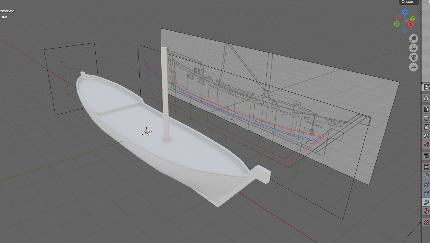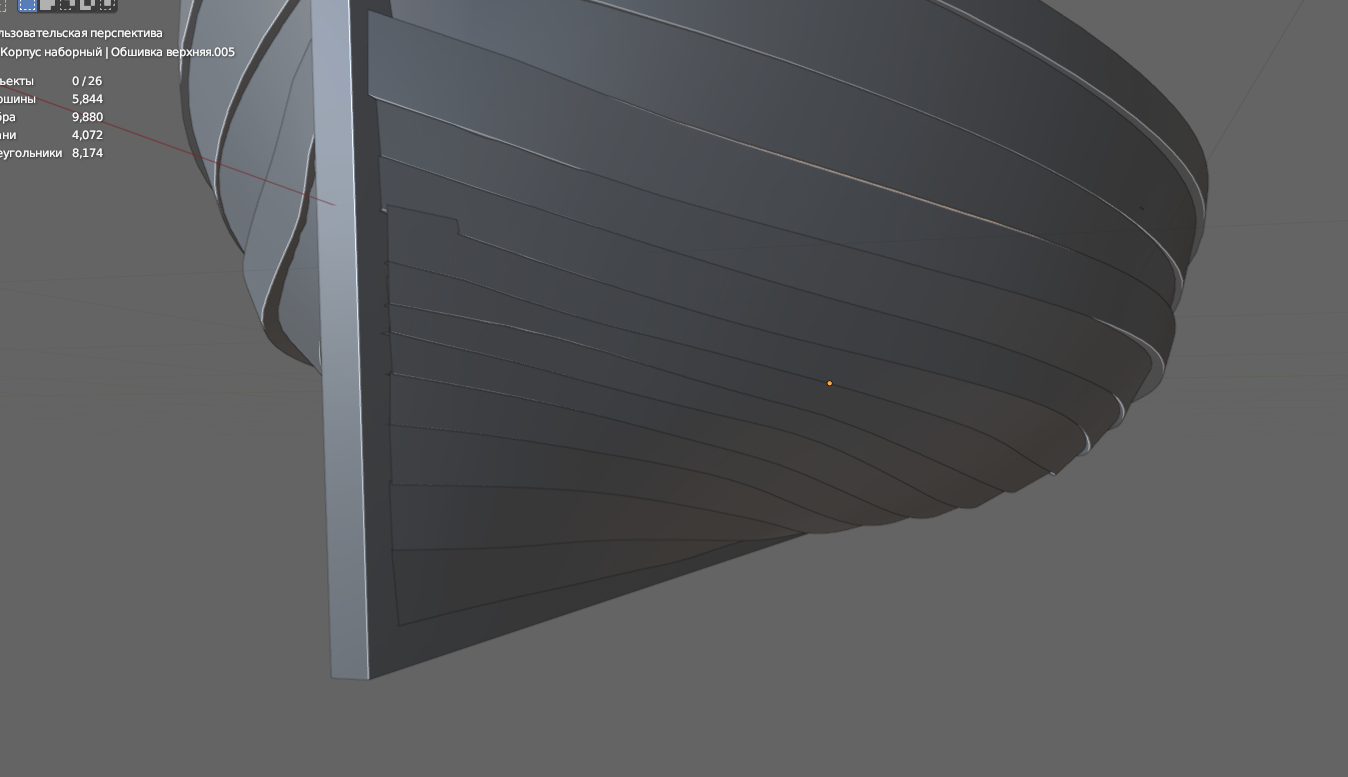 --------- Докладываю. С кочем оказалось не так все просто. Нашел толковую книгу про исследование и реконструкцию. Оказалось что борта делались внахлест. Ну ив целом внешний вид несколько другой. Переделал. С нахлестом заебался пиздец. Ебашил кривые с прямоугольной фаской и гнул точки по шпангоутам. Сперва думал может текстурой такое возможно, но опять же, чтоб такую нормаль по форме наложить, сперва надо было сделать "хай" вариант. Ну или я хз. Есть возможность в блендаке как то это автоматически сделать? Пробовал модификаторы деформы, обтягивания, но чет хуйня.