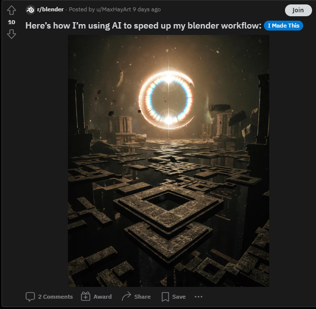 >>324592 >Он в огромном количестве юзает китбаши и генераторы. Всё равно должно уходить куча времени. >Ты переоцениваешь количество времени, требуемое для производства таких пиков Хз, мне кажется даже если он профессионал блендера, должно уходить пару часов. Сколько по твоему он делал эти рендеры? >Во многих работах явно видна обработка ИИ В тех что я скинул не видно нейронки. Разве что можно предположить что скайбокс и текстуры сгенерированы.