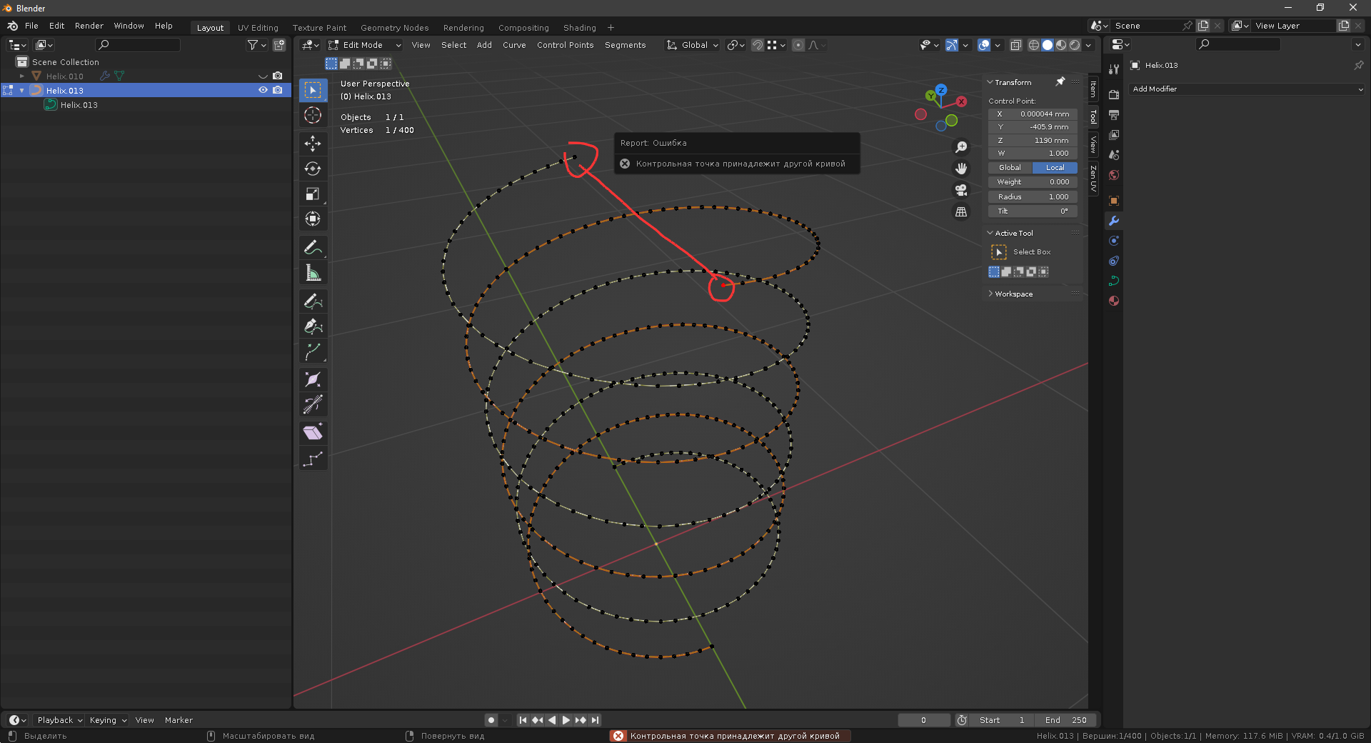 Как в этом вашем ебаном божественном блендере устроены кривые ? Нихрена понять не могу, объеденил два сплайна ctrl+j, дальше в режиме редактирования мне надо объеденить две точки, а он сука пишет что это разные кривые ? Какого блядь хуя ? Чо за блядь бред ?