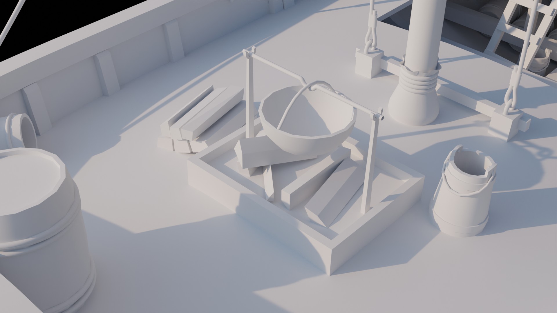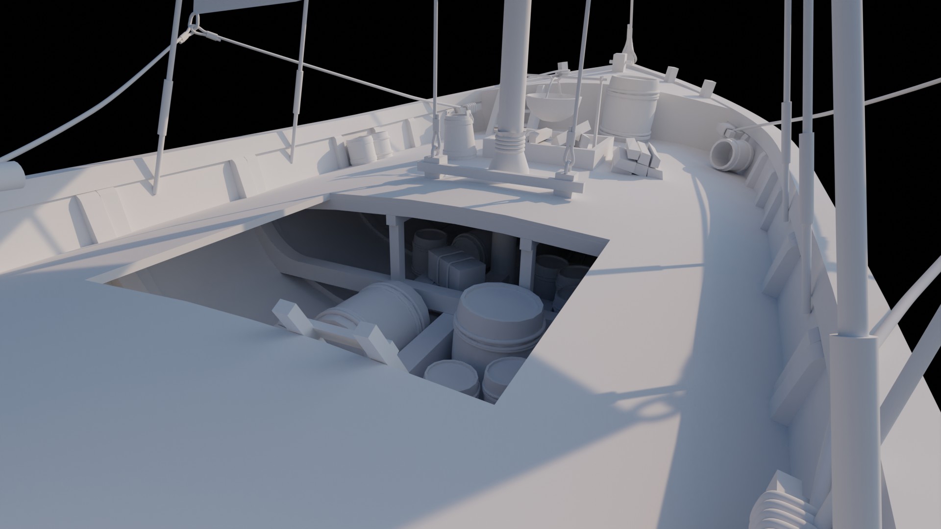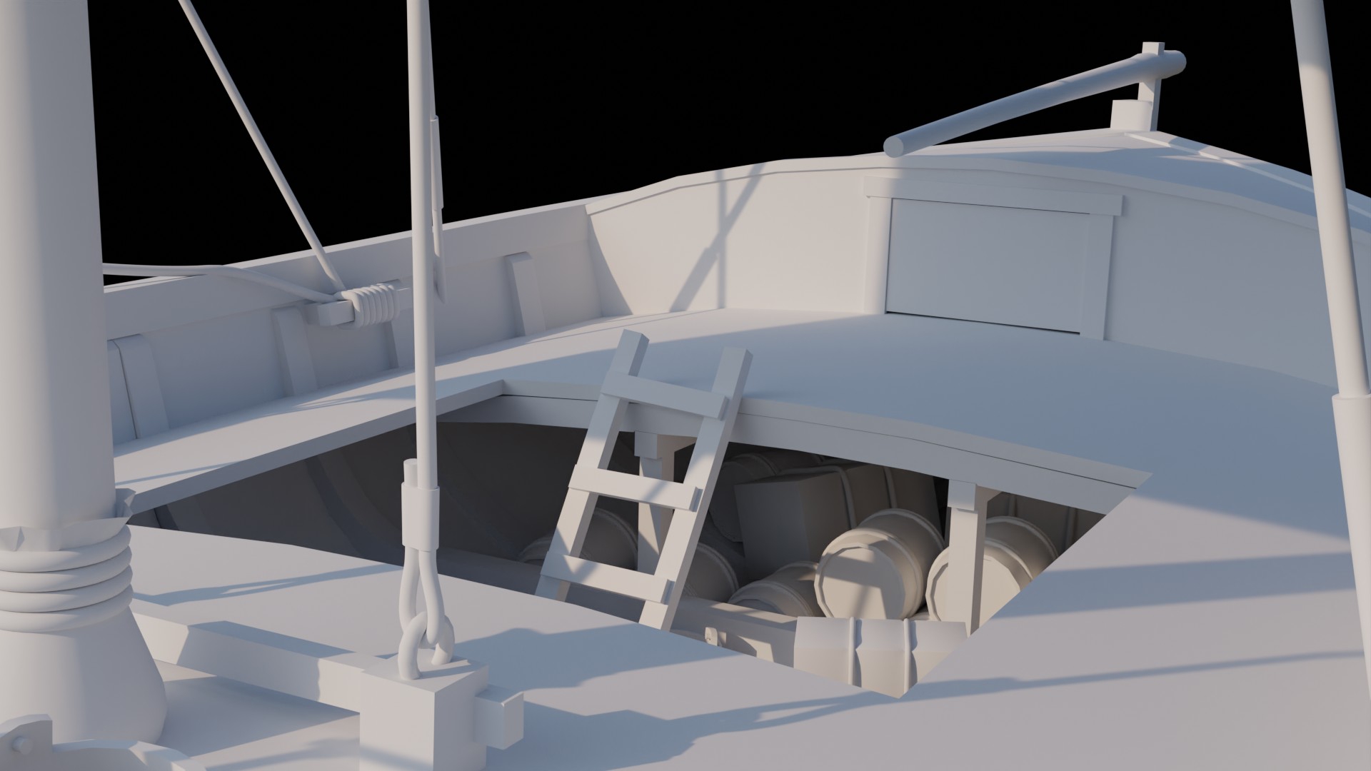 >>324987 Спасибо за отзыв >Бевелы принципиально нигде не делал? Да, именно так, и >процедурными эдж масками так и думал сделать. >в качестве пропса Я не думал о модели как о пропсе, и вообще чем-то игровом, скорее как псевдо-реконструкции, визуализации и т.д. Это кстати отдельный проблемный момент - без тз и указания куда и зачем нужна модель, я скатываюсь в "делаю как делается". Главная цель же была - сделать Коч как таковой, потому что корабль нравится. Второстепенные - понять как делаются те, или иные детали. Это по сути второй корабль который я делаю, вот так по-ходу разбираюсь.
