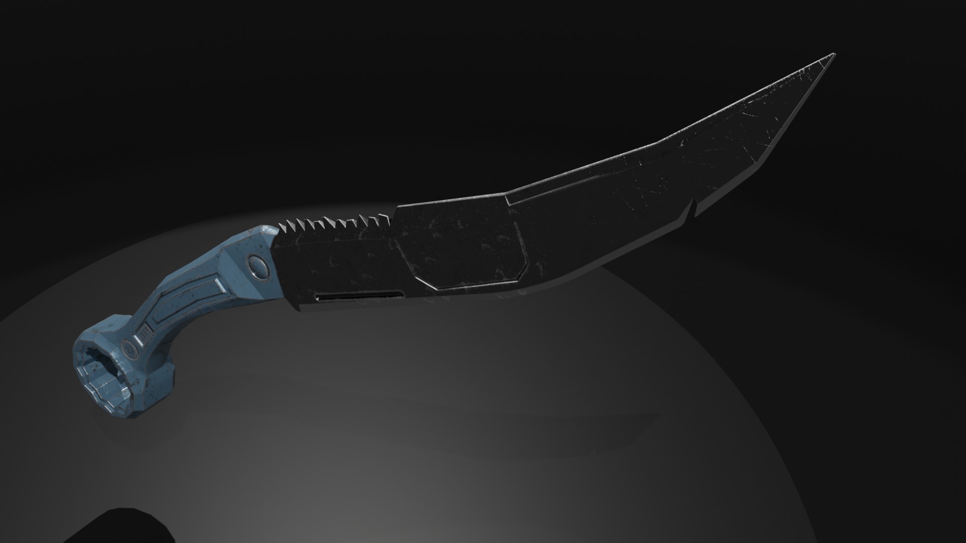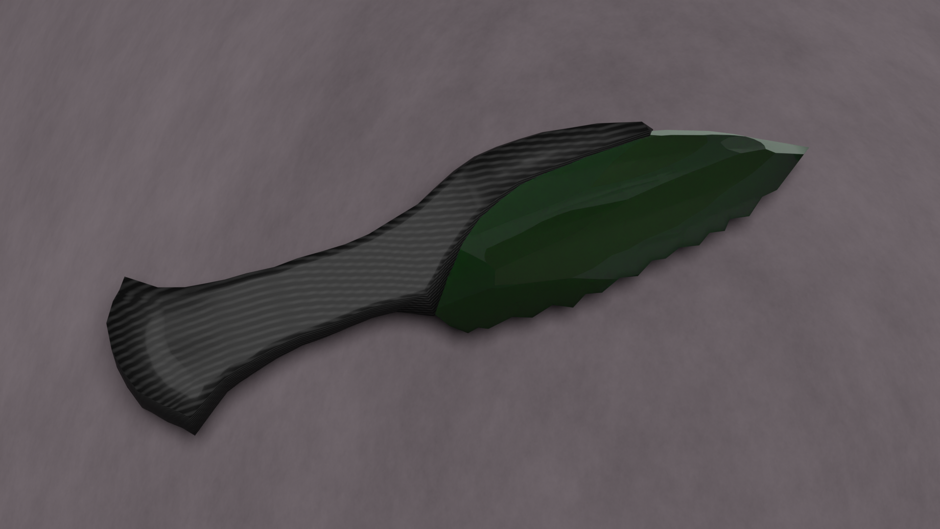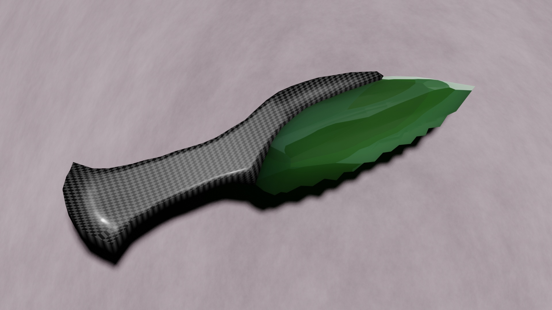 Нож кибер-неандертальца. Рукоять повторяет формы костяного ножа, но из карбона. А вороной нойз был нужен что б имитировать грубую обработку стеклянного лезвия.