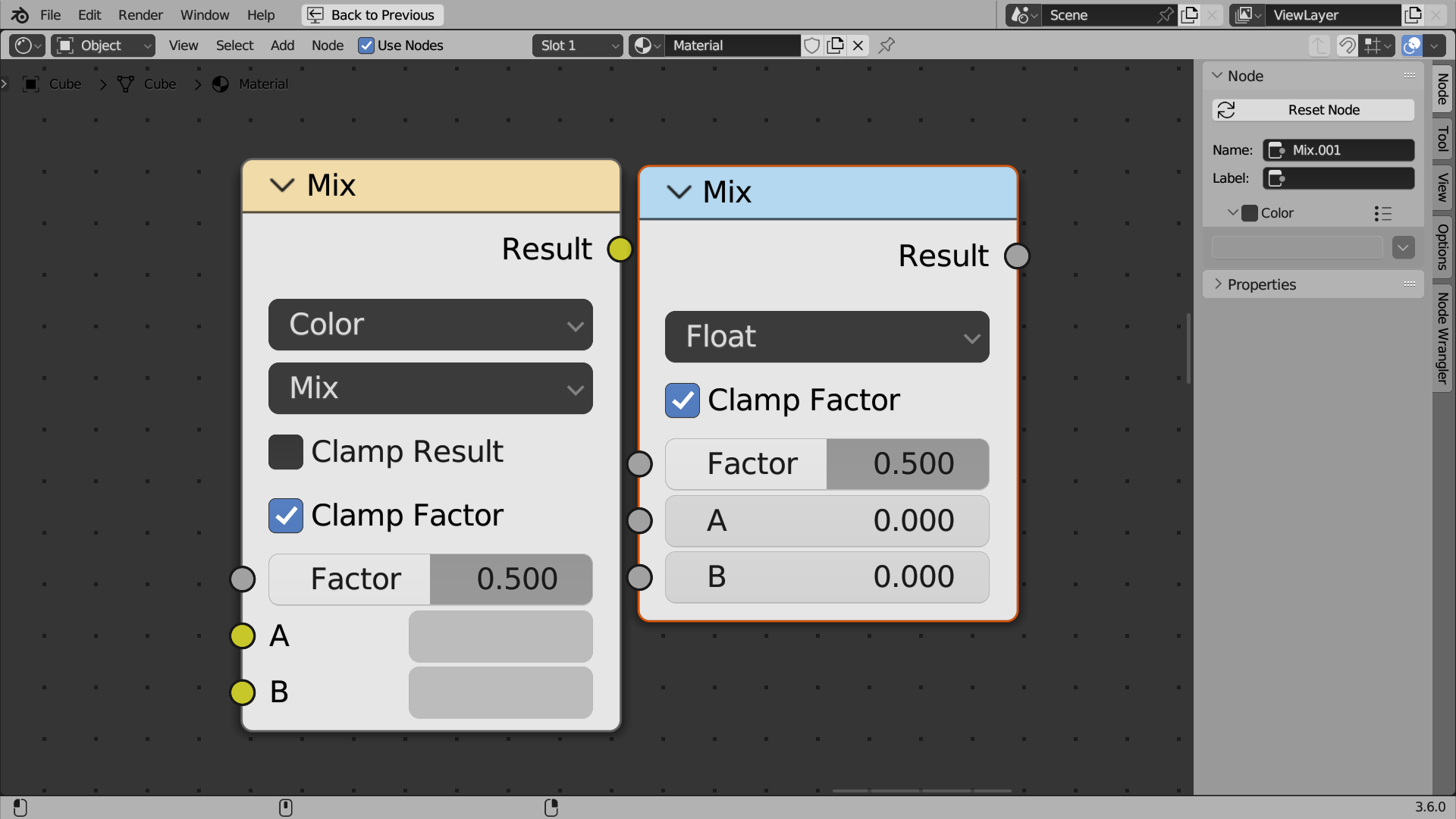 >>325412 Та что слева смешивает 4 значения с более сложными алгоритмами, та что справа 1 линейно, соответственно она гораздо быстрее. Поэтому когда тасуешь чёрно-белые формочки нужно использовать только правую. А то вечно вижу как гении по 20 микс колор нод втыкают, а затем удивляются что у них шейдер тормозит как сучка.