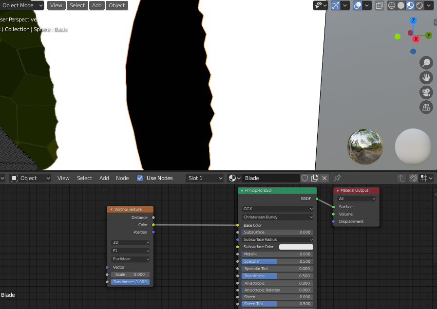 Бленданы, спасайте, например есть цилиндр, накинут эмишен и транспарент, соединены через микс шейдер, в фактор втыкивается шум и через шум можно маскировать часть цилиндра- та которая видна светится соответственно та которая не видна ничего не делает и ее не видно, пробовал так же сделать принциплед волуме, но не работает, только если текстурой градиента срезать часть, а с шумом не выходит. Как на цилиндр с принциплед волуме накинуть маскирование шумом чтобы маскирование было не равно ерным?