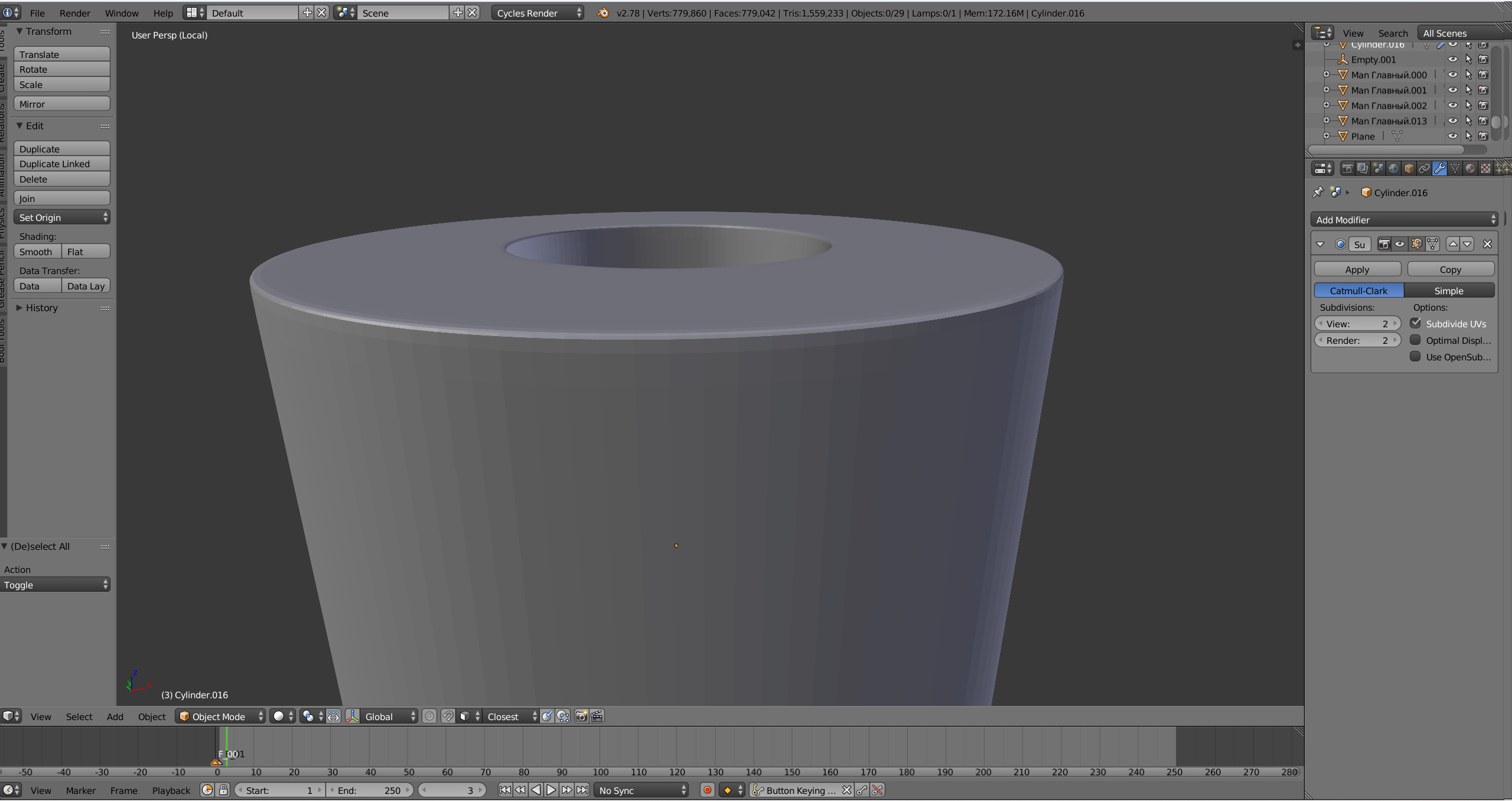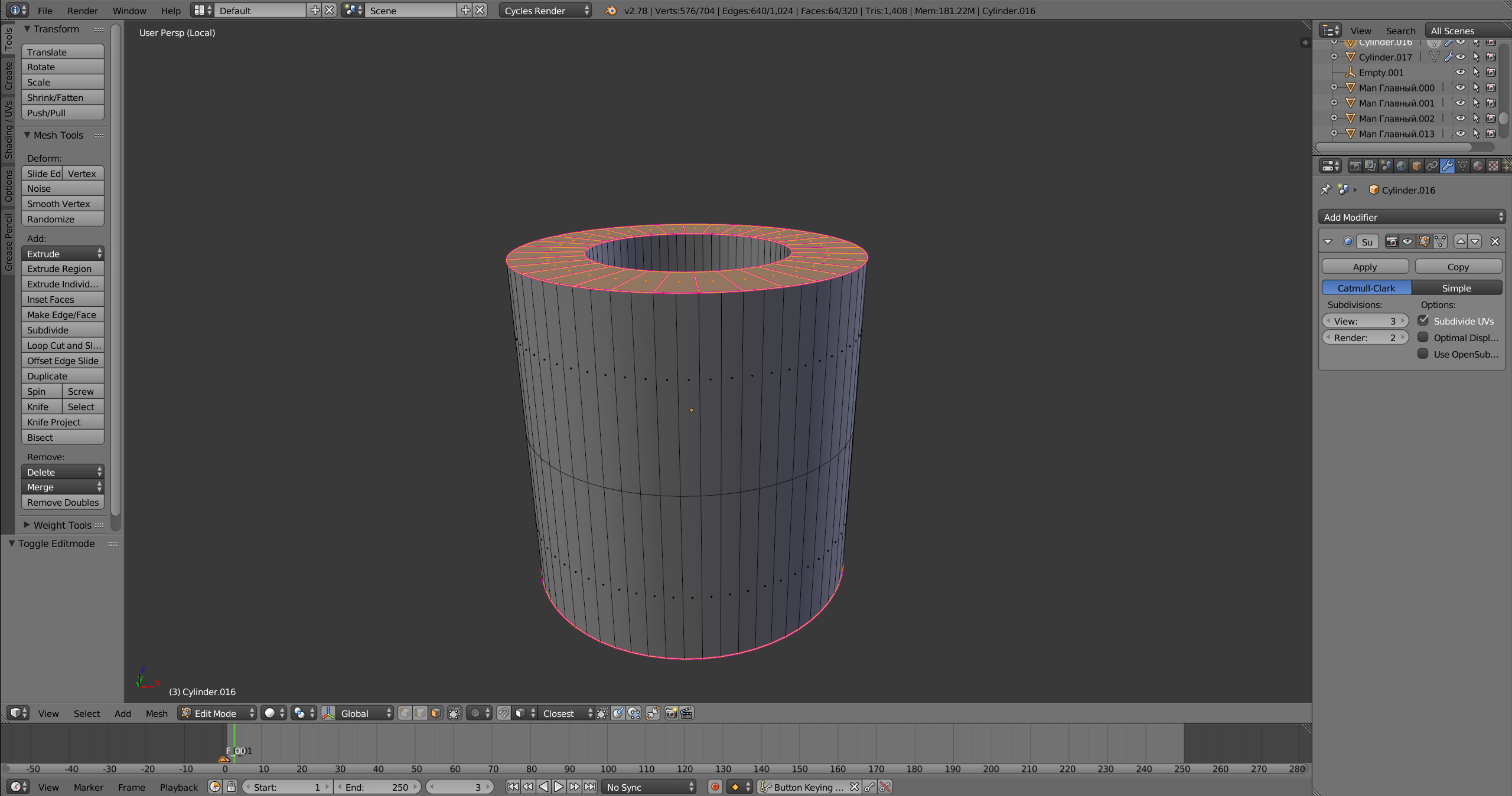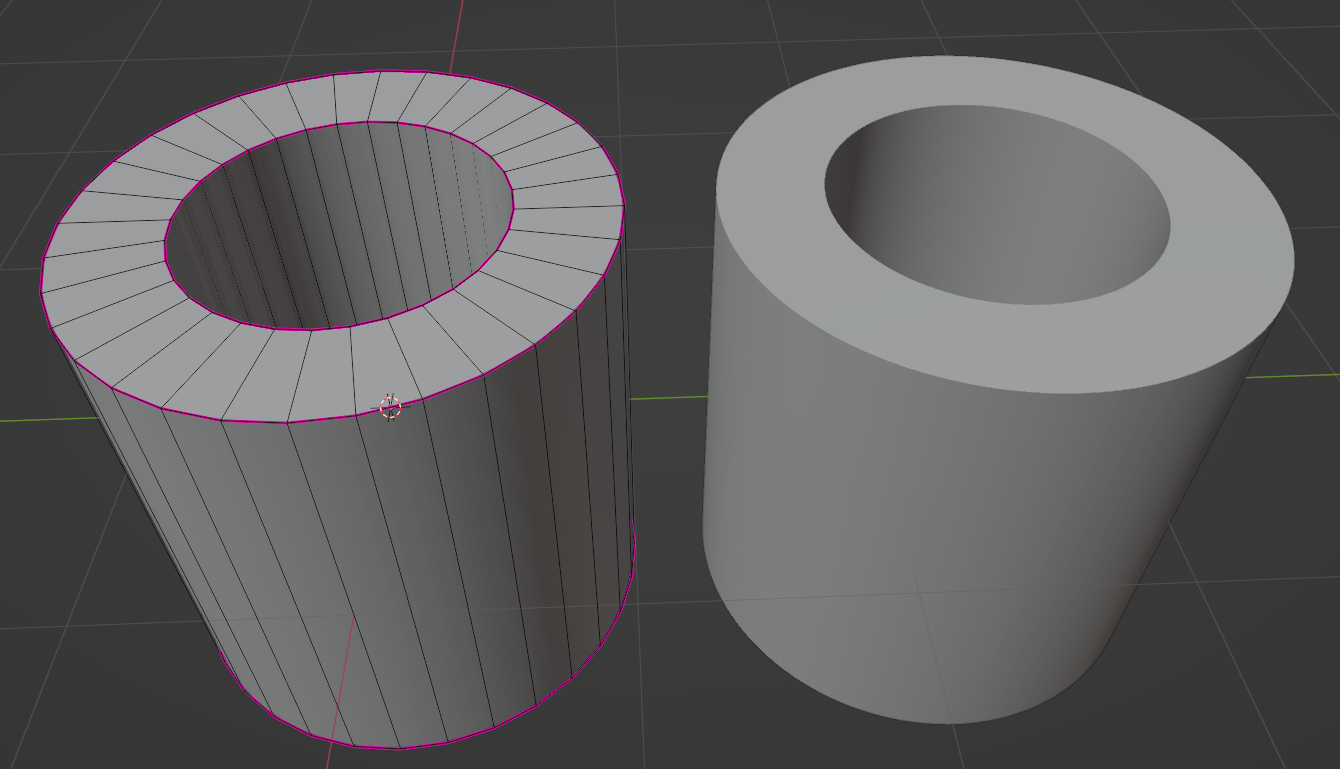Аноны, напомните плиз, как наиболее просто и удобно вырезать под сабдив из цилиндра дырку? Создаю цилиндр, применяю на него сабдив 1-го уровня для создания доп ребер жесткости на основаниях, булеаном вырезаю отверстие, затем уже рабочий сабдив для регулирования уровня сглаживания. Но возникают артефакты, см. пик 1. Так понял из-за того, что полики на основаниях нуждаются еще в дополнительных ребрах, чтобы с ребрами на боковине цилиндра совпадали. Как сделать грамотно? Именно с помощью булеана и без аддонов. (Через солидифай с полым цилиндром знаю, но в ряде случаев не оч удобно, нужен через булеан способ)