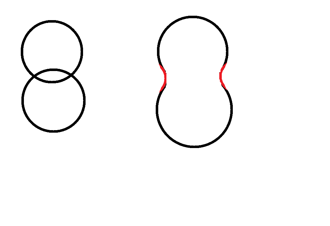 Как правильно срастить два цилиндра, чтобы на месте их соединения был плавный изгиб, как красным на пикче? Я пробовал сначала соединить через Boolean, а потом через Бевел растянуть соединяющее ребро, но проблема в том, что Бевел тянется только до ближайших соседних рёбер. Если мне нужно сделать большой и длинный изгиб на месте соединения, то такой способ не подходит. Как это реализовать?