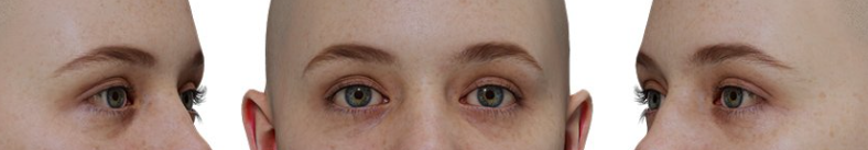 Ну и как логичное дополнение, для частичной борьбы с этим, только если ты точно знаешь, что твоя модель будет долго находиться с закрытыми глазами крупным планом, то придется увеличить пространство век на модели, и как следствие на UV, изначально делая веки расслабленными, прикрытыми почти до прищура.