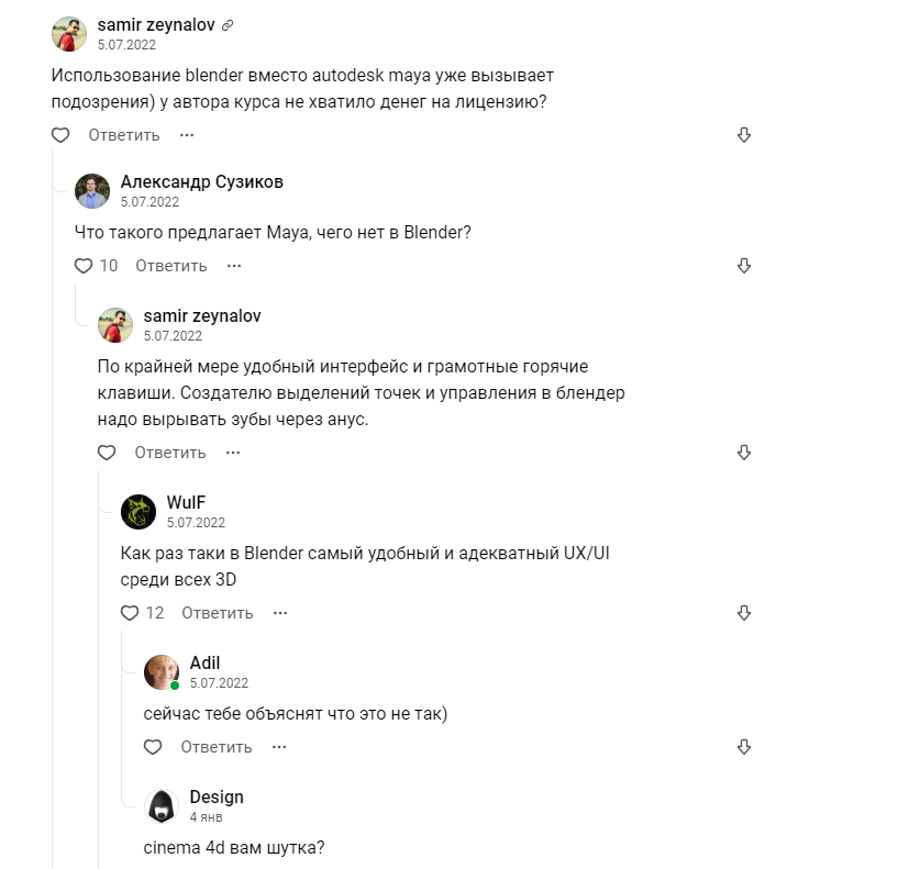 Начал вкатываться в блендер, сделал парочку простеньких моделек. Но тут наткнулся на зрадные статейки от 2020 года, что мол блендер кал и его в серьёзных сферах не используют. Насколько это правда? Вообще умея моделировать в блендере и зная какой-то доп софт, реально найти работку?
