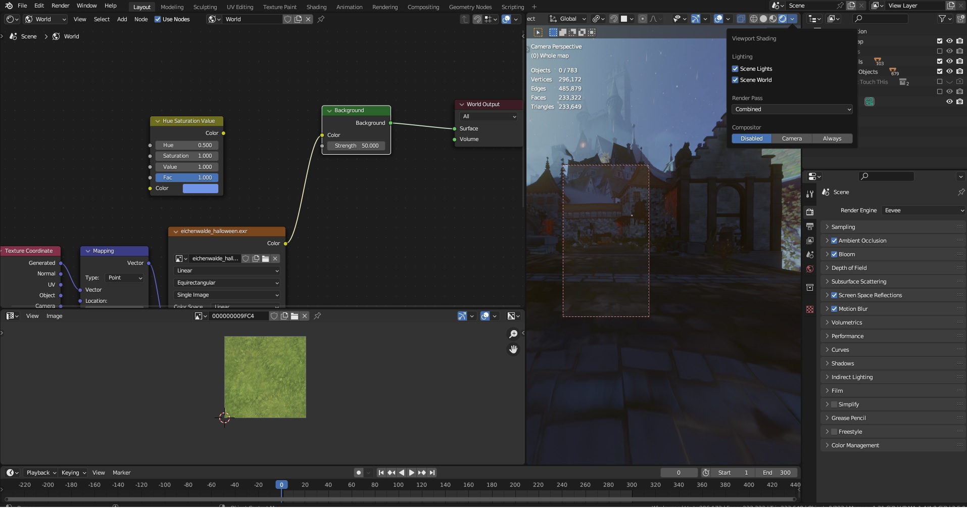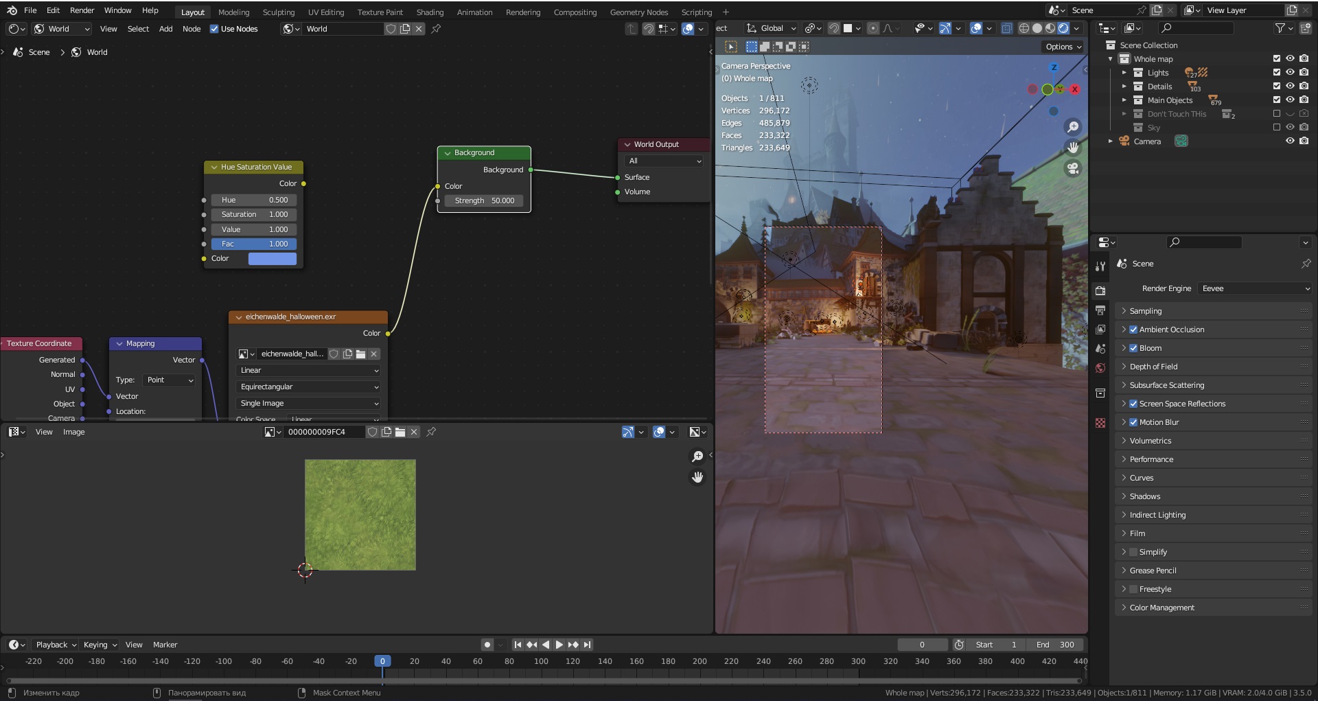 >>326754 >Почему не работает текстура окружения? крутишь вертишь, меняешь силу - похуй. Потому что ты рендеришь в eevee. В нём текстуры окружения поддерживаются весьма условно. Для него тебе нужны irradiance volume. Переключись на cycles, будет разница.