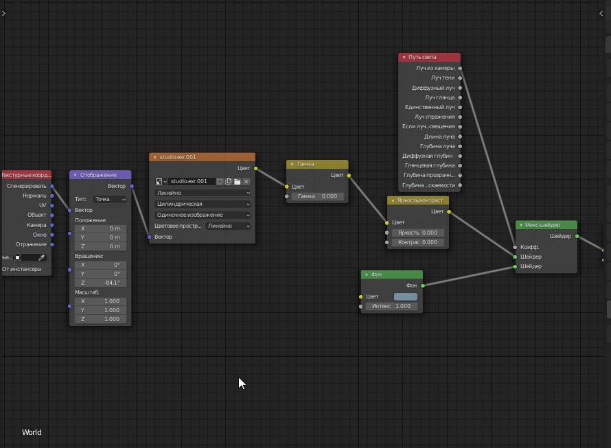>>327200 И у тебя какая то хуйня в нодах освещения мира. Если это попытка в студийный свет, то лучше с плейном и 3-мя лампами реализовать - более контролируемо. Ну или хз что ты там хотел изобразить