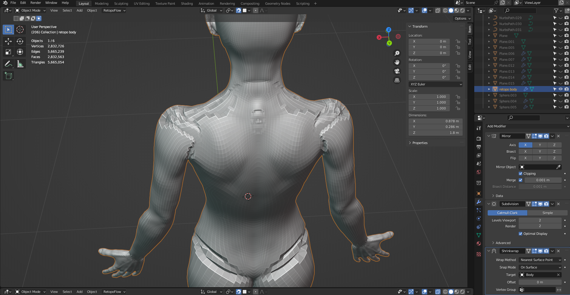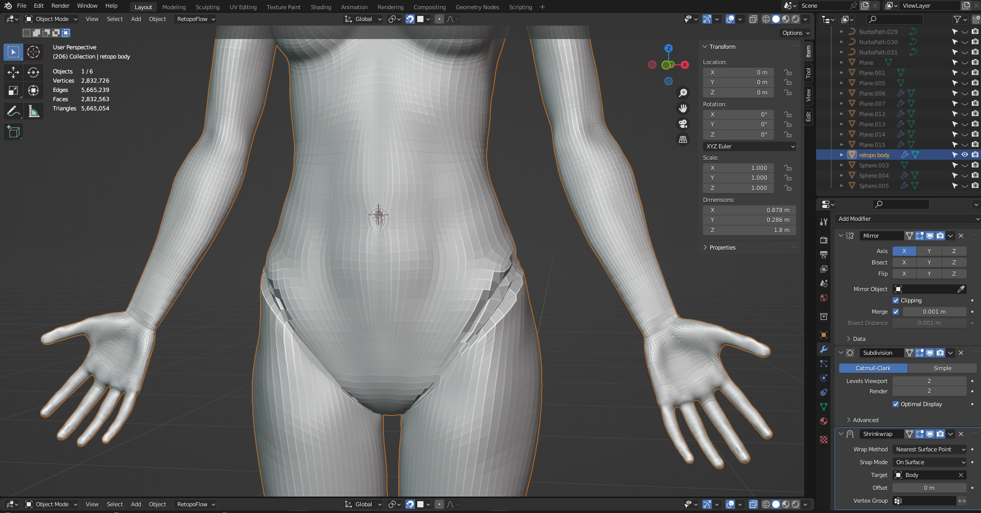 >>327325 Попробуй оптимизировать проект. Все лишнее удоли. Хайполи объедини и раздели на две части - голова и туша. Лоуполи так же соответственно. Дальше ремешай тело с нужным разрешением, еще раз подгони ретоп под хайполи в режиме скульпта. Не должен проект на такой стадии весить 2,5 гб. Проекты телок с опика хайполи вместе с лоу весили 1гб и 500мб. Сам подумой, все эти швы с внутренними полигонами занимают память.