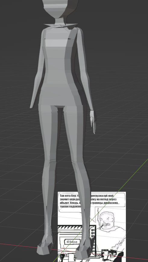 >>327752 Ну во первых, ты чмо. Во вторых, ты проебался в пропорции 7.5 голов стандартная самка человека. 8 это героическая кобыла с огроменнешей задницей и шикарными огромными ляхами, которая нарожает целую деревню детишек. В третьих, у тебя тремор рук? Ты блять даже элементарно кубы не можешь расставить в притык? Хуля у тебя они летают друг на друге. Бегом исправлять все